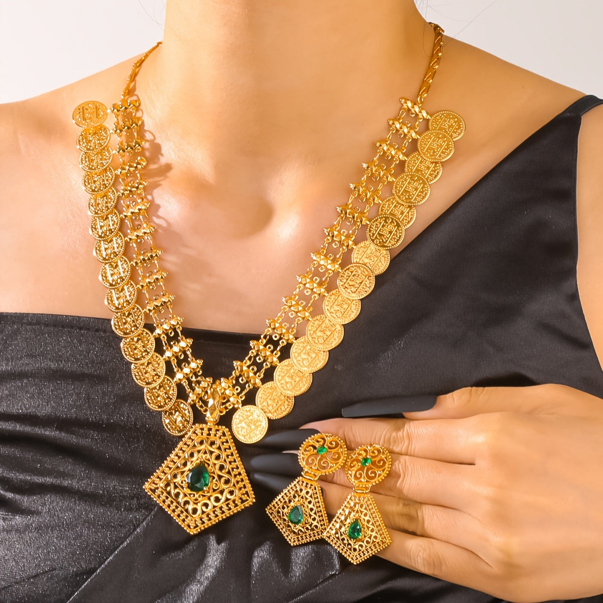 An'anaviy mis va oltin qoplangan zargarlik to'plami, Jhumka taqinchoq va bilaguzuk bilan