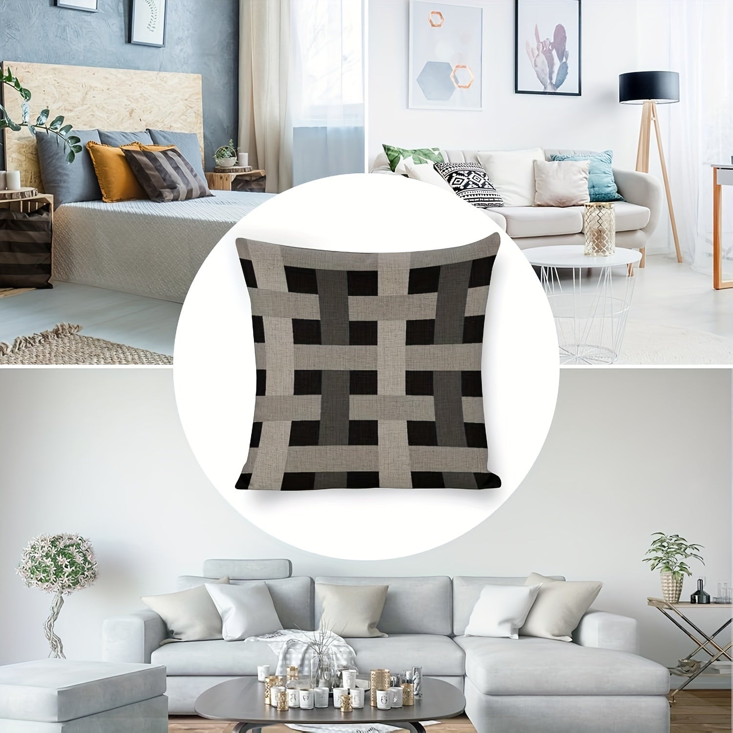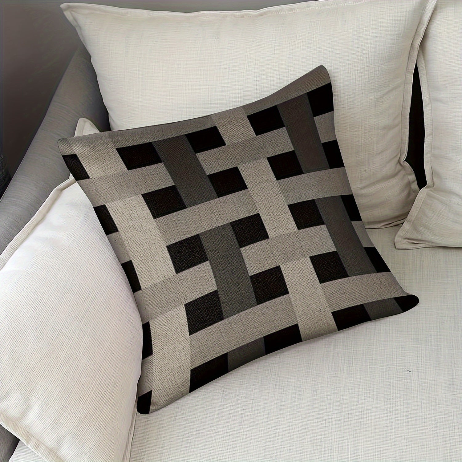 Qora va kul rangli linen bezakli yostiq qopqog'i, zip yopilishi bilan, divan va yotoq uchun