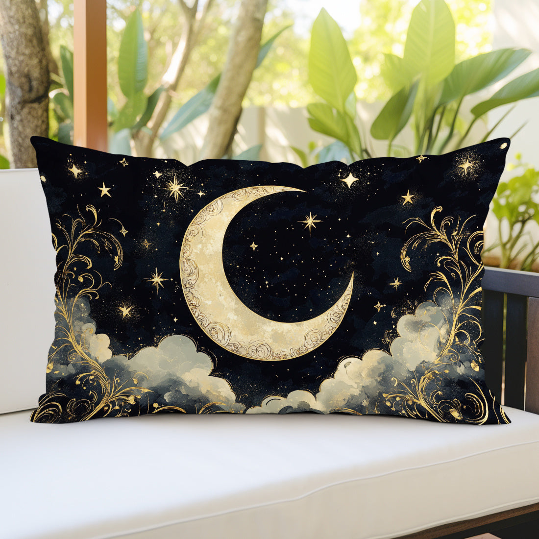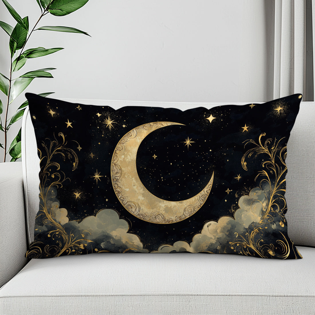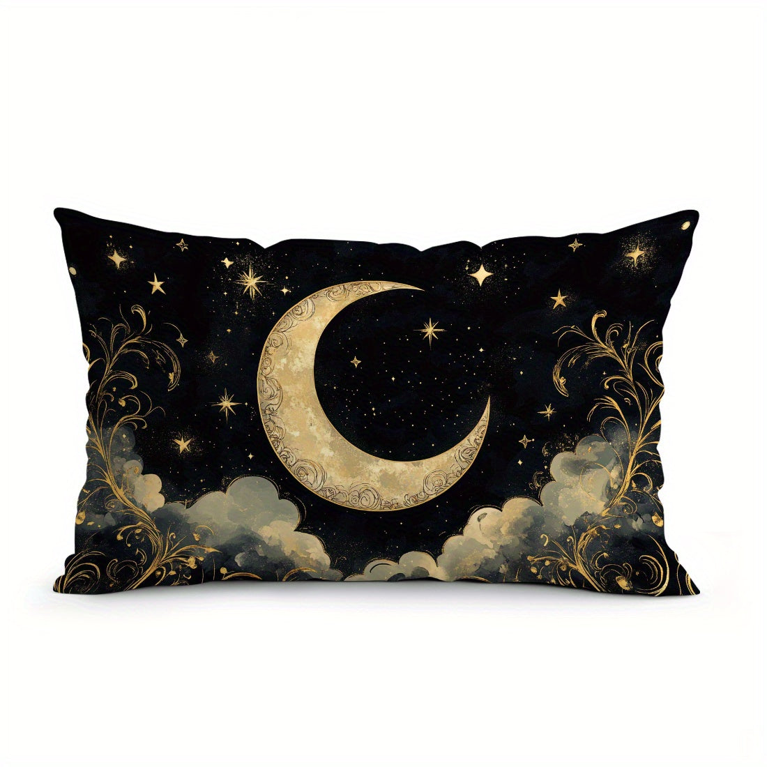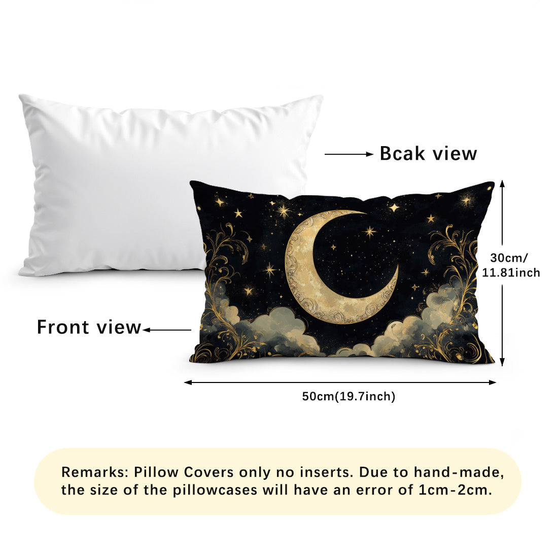 Yarim oy va yulduzlar bosma yostiq qopqog'i 30x50cm samoviy mato bilan, zippersi yopiladi