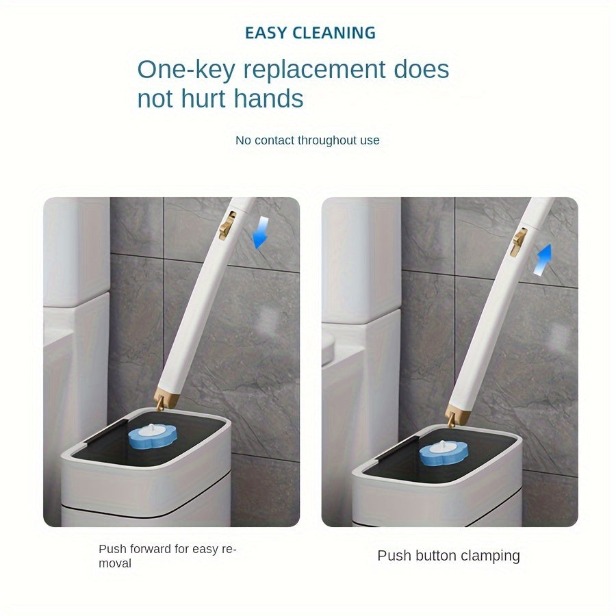 Qulay bir martalik hojatxona cho'tkasi to'plami, uzaytirilgan tutqich bilan - o'zgaruvchan boshlar va birlashtirilgan tozalash eritmasi bilan birga keladi, hojatxonalar va oshxonalar uchun ideal, shaffof ko'rinadigan dispenser, gubka cho'tka bosh.