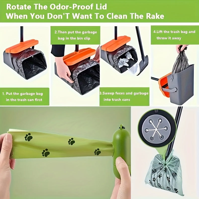 Qulay it axlatini to'plash to'plami, egiluvchan supurgi, axlat qutisi va qirqich bilan - uyda, hovlida va ochiq joylarda axlatni oson olib tashlash uchun ideal - qo'shimcha yetarli masofa uchun uzun tutqichga ega.
