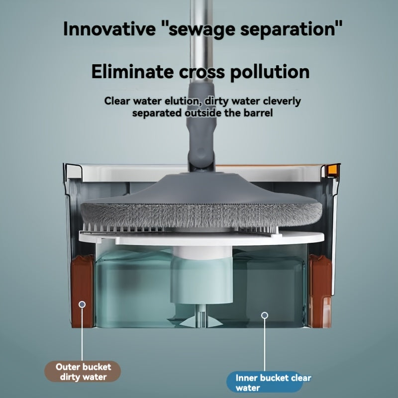Qulay Oson Bosish Tozalash Mop va Chelak To'plami - Elektr energiyasi talab qilinmaydi, Oshxona, Yashash xonasi, Yotoqxona, Hammom uchun ideal - Majburiy uy tozalash qurilmasi