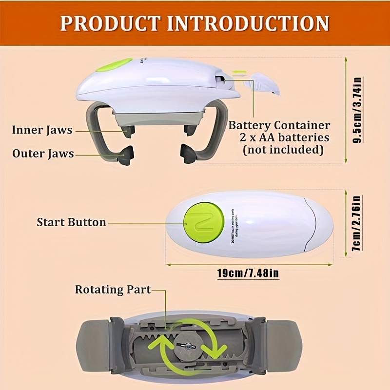 Elektr energiyali, batareyka bilan ishlaydigan, qo'ldan ozod, bankani ochish uchun mustahkam ABS oshxona asbobi