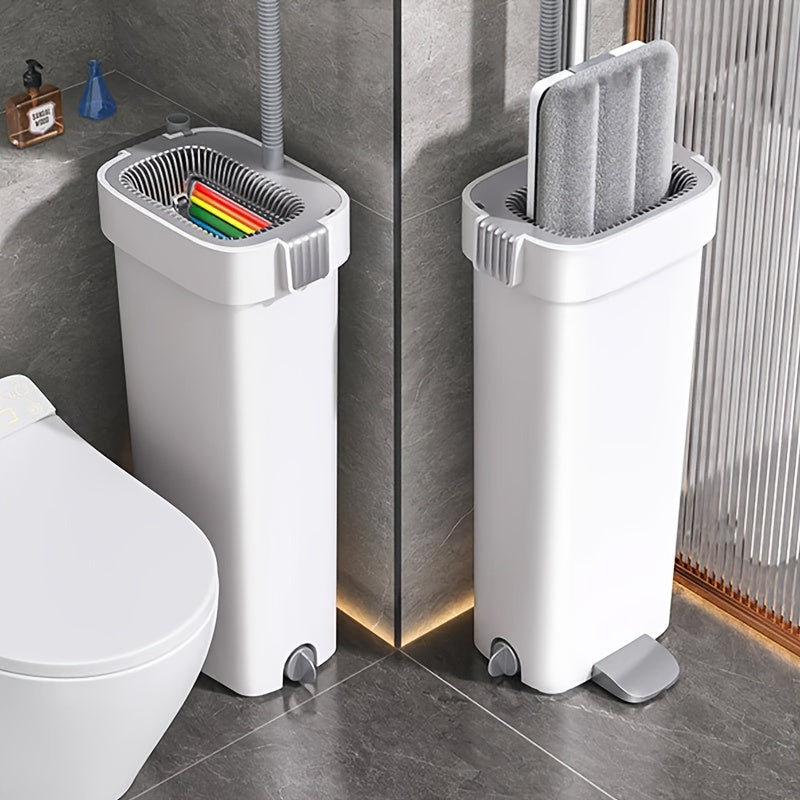 Qulay qo'lni bo'sh ushlab turadigan tekis mopu va chelak to'plami - 2 ta mikrofiber pad bilan birga keladi, yotoqxona, yashash xonasi, hammom uchun ideal - oson tozalash va joyni tejash uchun mo'ljallangan