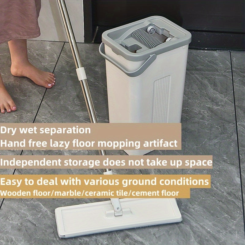 Uy uchun mop va kova to'plami, tekis mop bilan, plitka, marmar, yog'och pol uchun