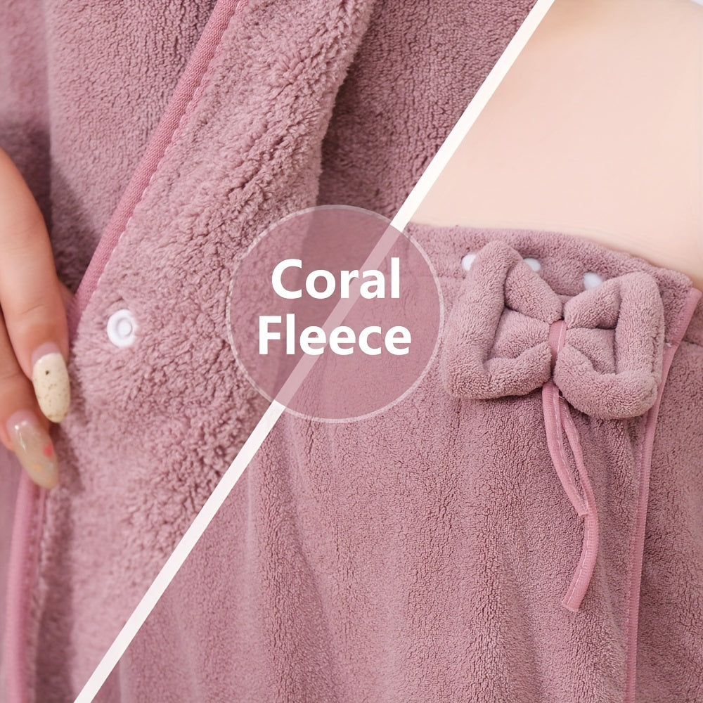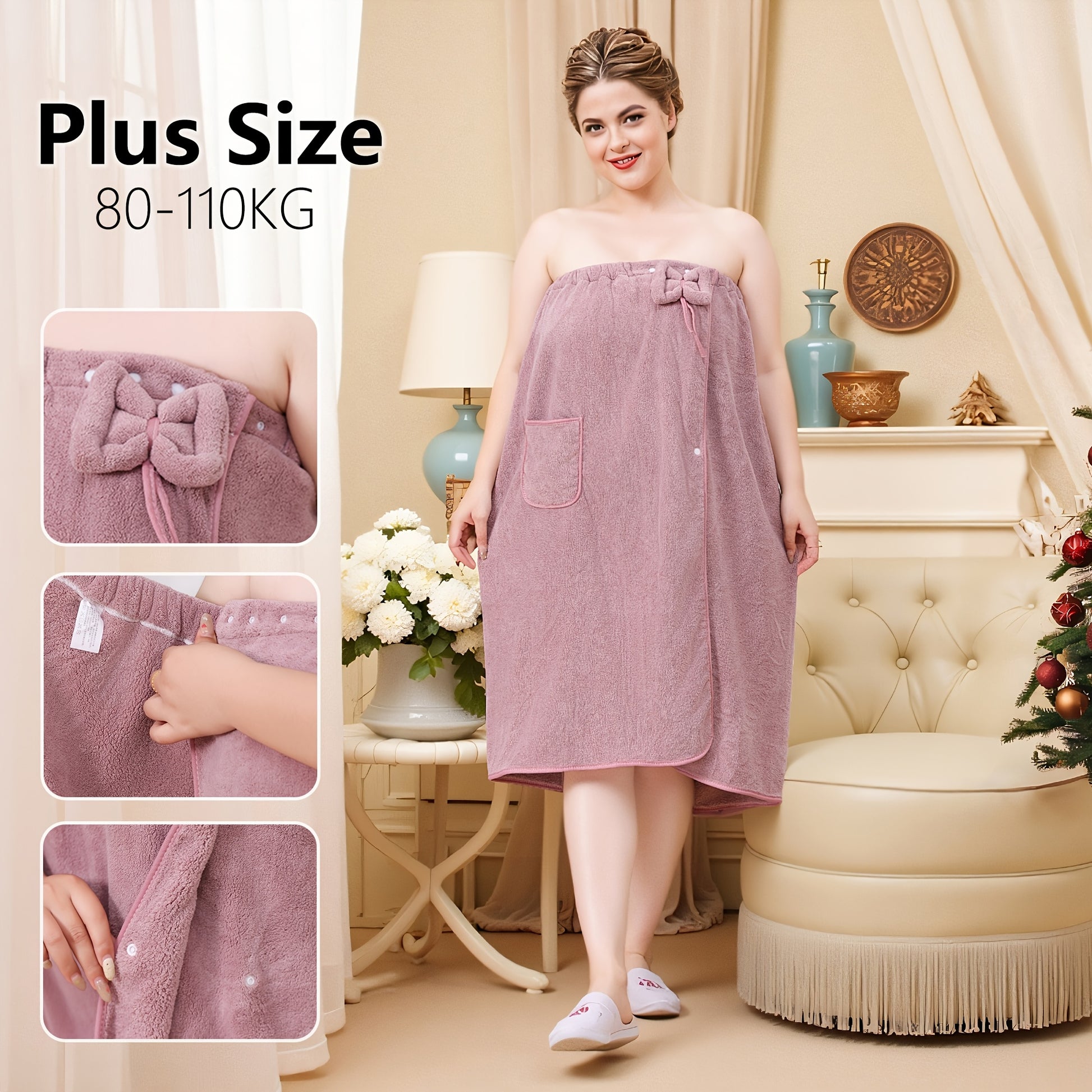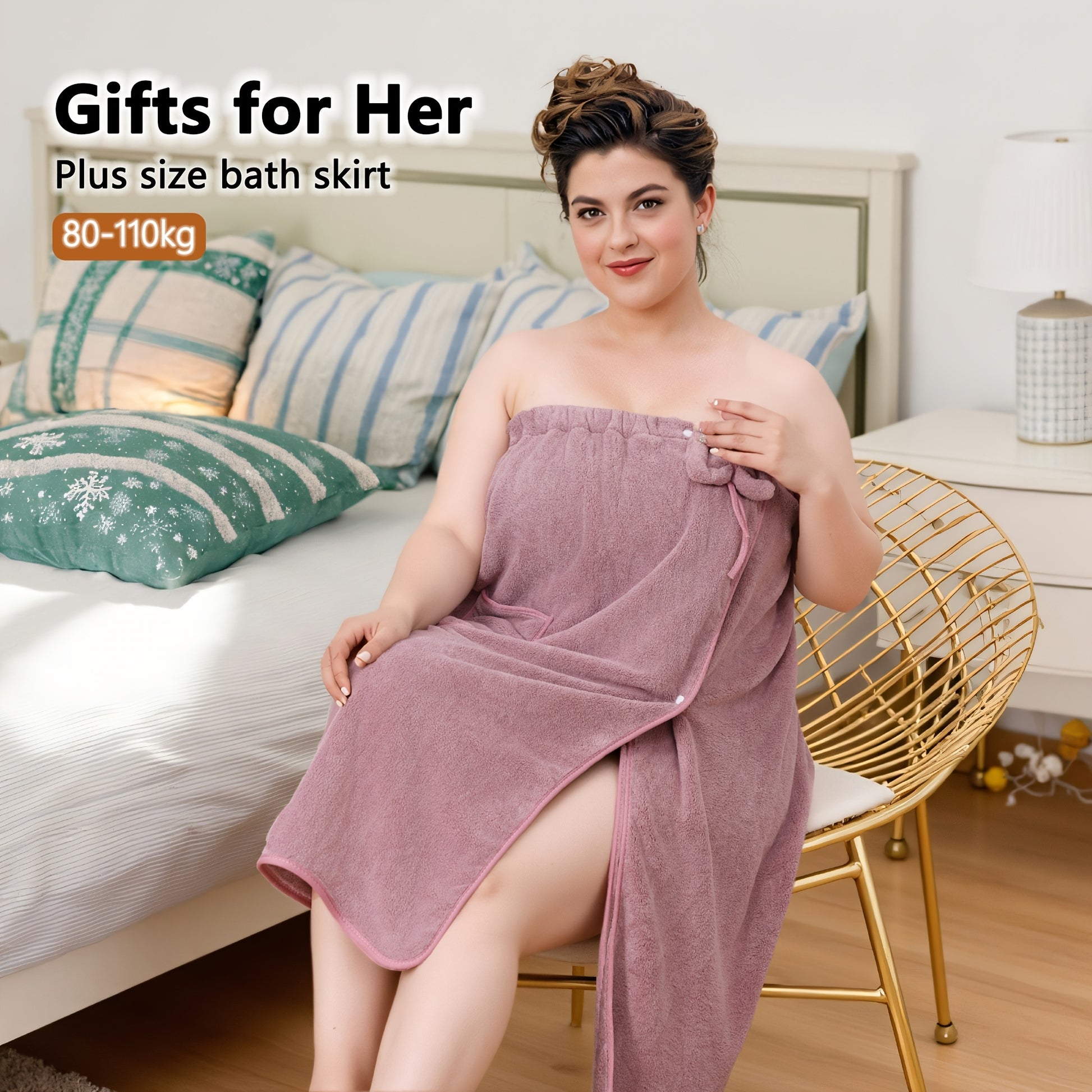 Katta o'lchamdagi ayollar uchun koral velur hammom yubkasi, so'ruvchan polyester mato, elastik qisqarish dizayni va yumshoq trubka tepa. 280gsm, 78.74x157.48sm.