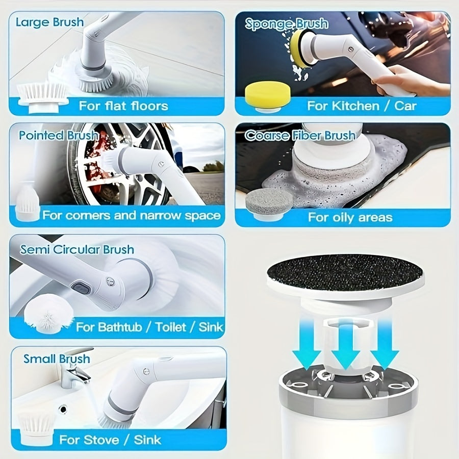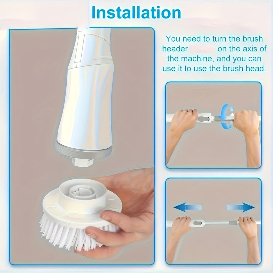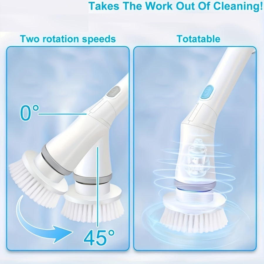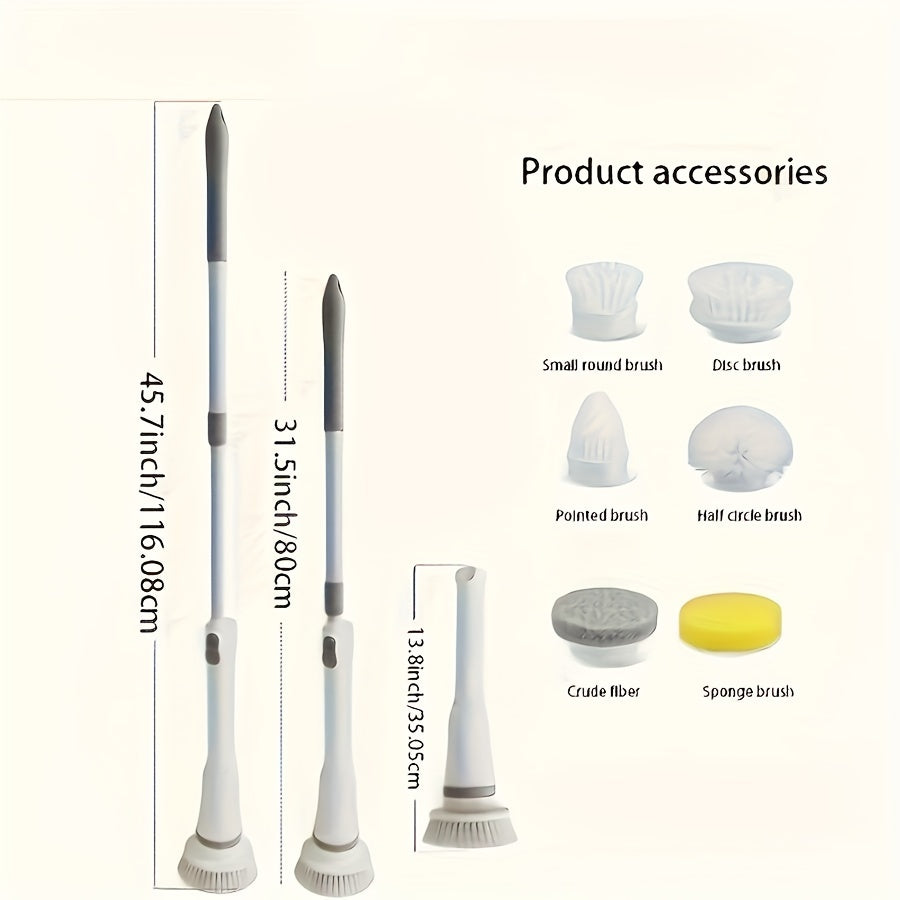O'zgartiriladigan cho'tkali va sozlanadigan tutqichli hammom tozalash uchun simsiz elektr aylanuvchi tozalagich