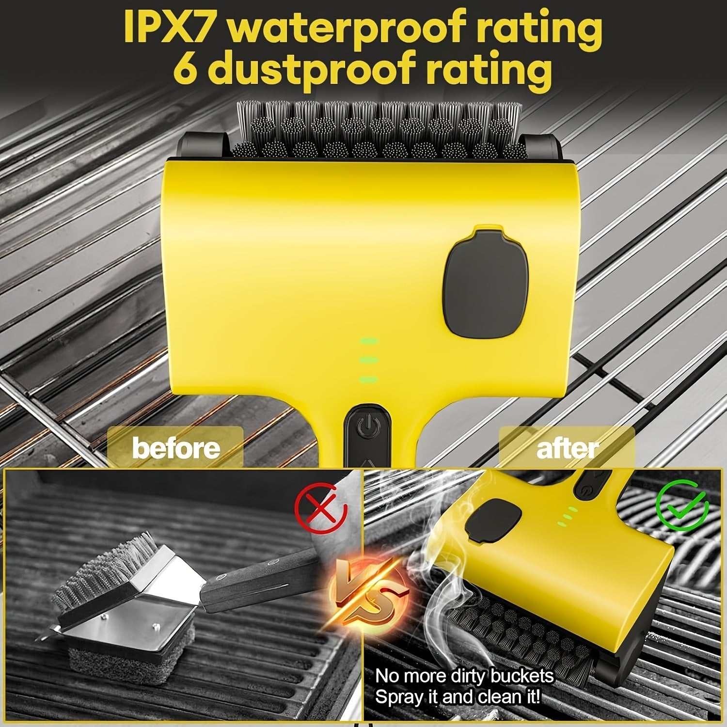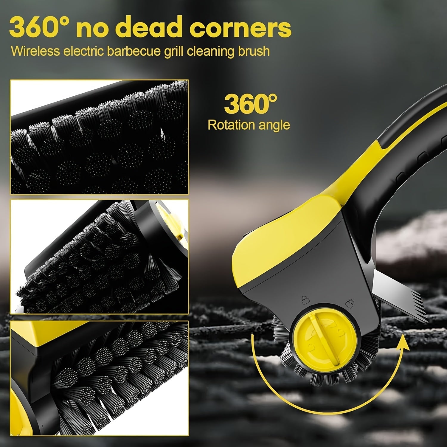 Kabelsiz grill choʻpchasi, ikki tomonlama aylanuvchi choʻpchalarga ega, qayta zaryadlanadigan elektr tozalovchi