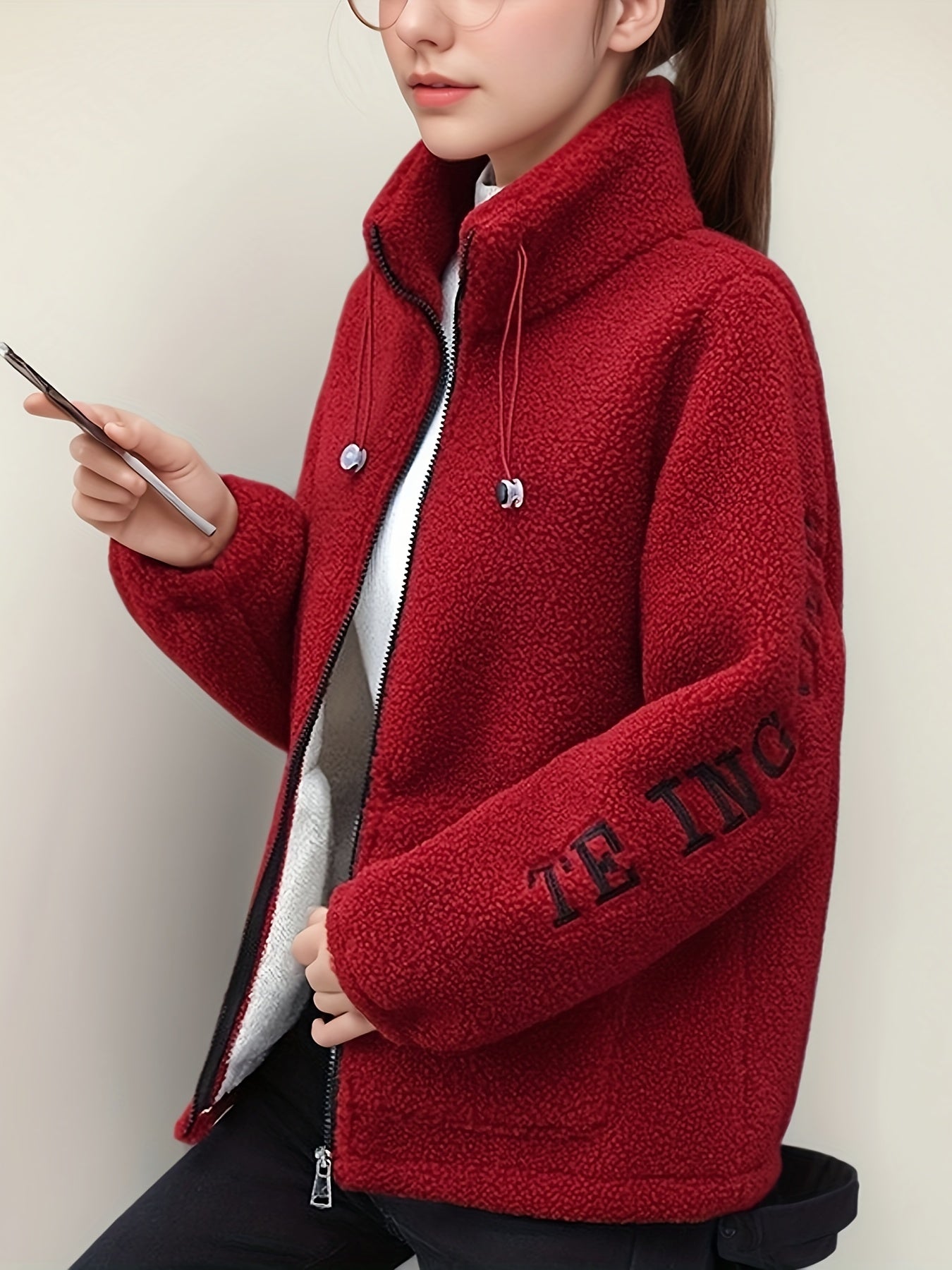 Ayollar uchun qulay, to'quv kabi jilet, iliq qizil kadife bilan tikilgan harflar bilan, barcha fasllar uchun mukammal. Qiziqarli va tasodifiy, turli xil yenglar va to'quv kabi tuzilishga ega.