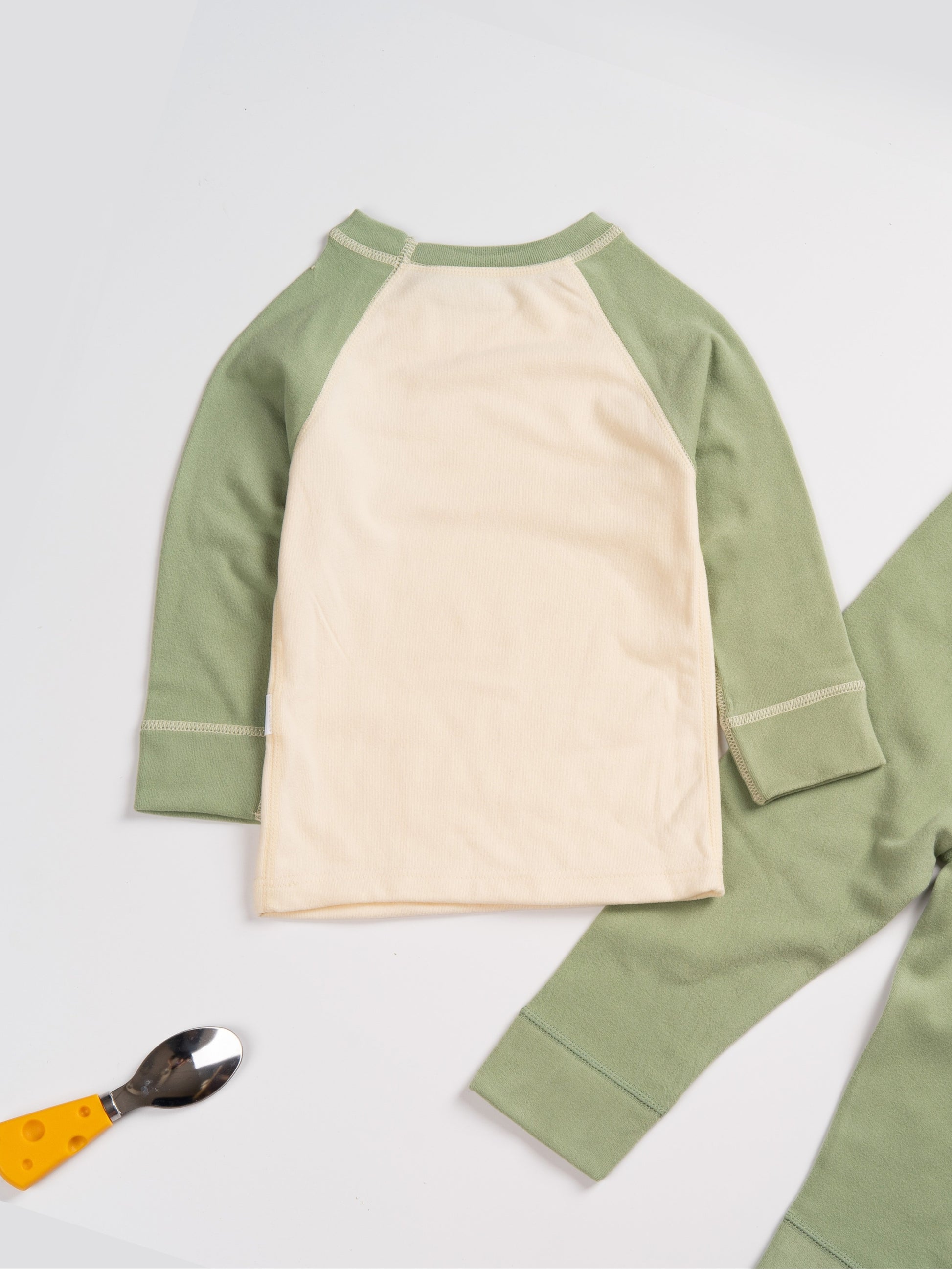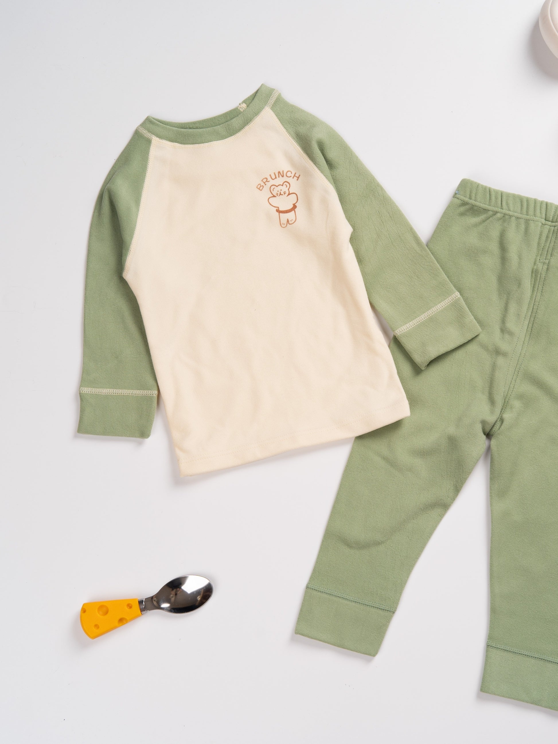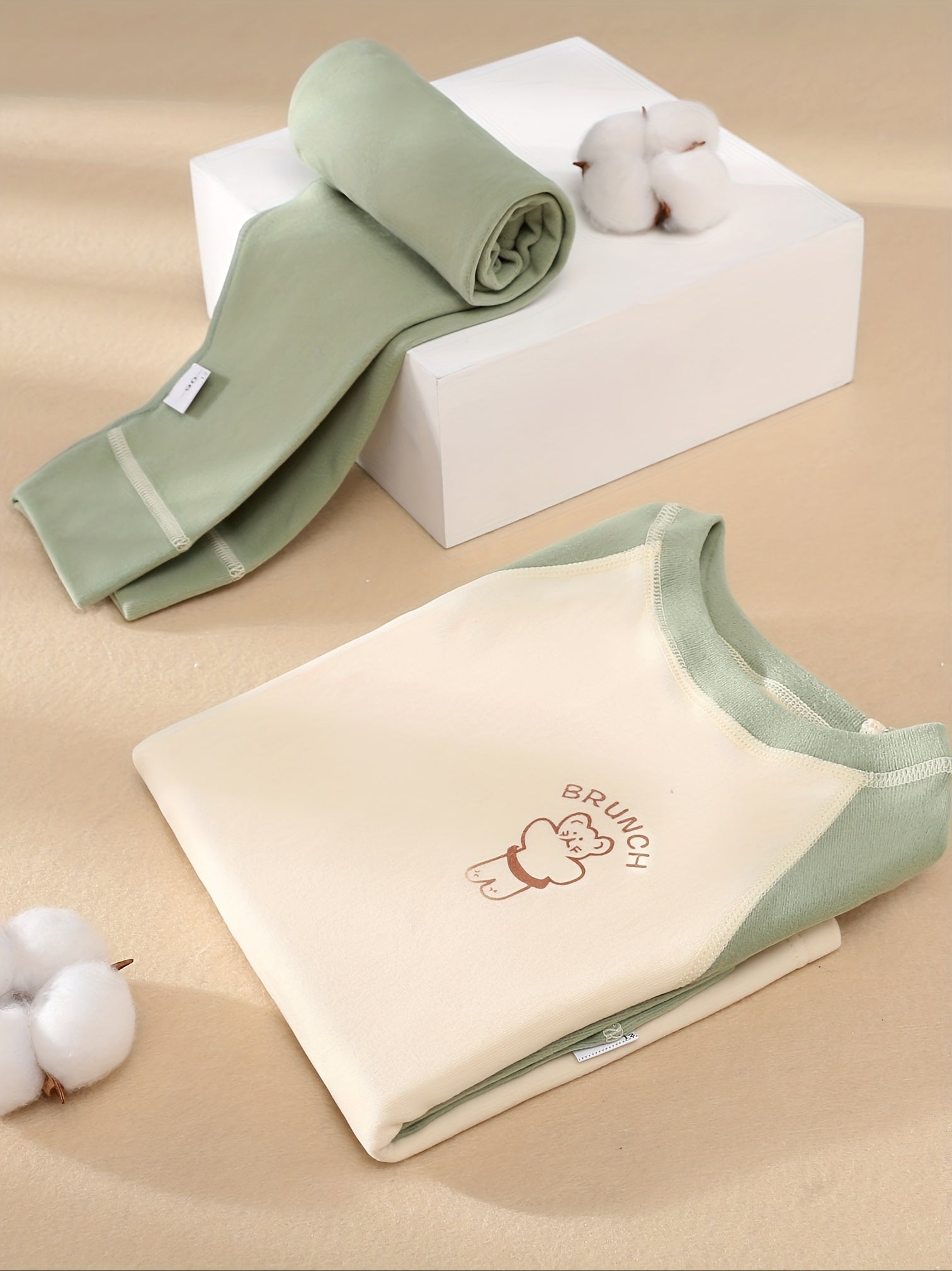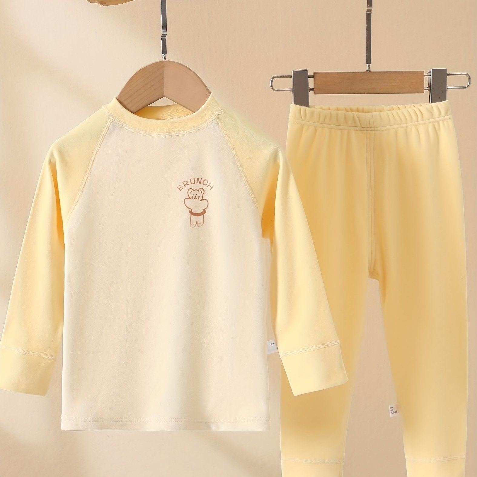 Qizlar va o'g'il bolalar uchun mo'ljallangan, uzun yengli ko'ylak va shimlardan iborat, iliq polyester aralashmasidan tayyorlangan, kuz/qish mavsumi uchun ideal bo'lgan qulay bolalar multfilmlaridagi hayvonlar printli kiyim to'plami.