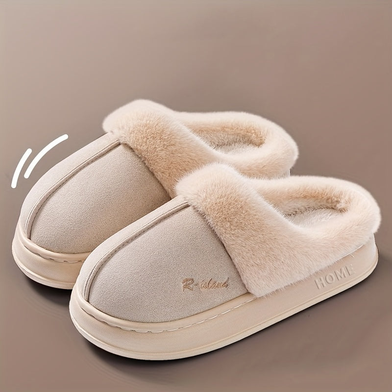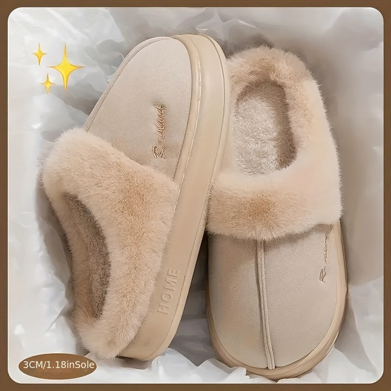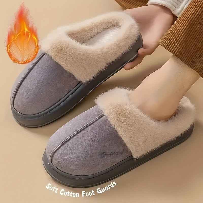 Qishki iliqlik va qulaylik uchun qulay vintage uslubidagi yumshoq ichki qismga ega dumaloq barmoqli uy poyabzallari.