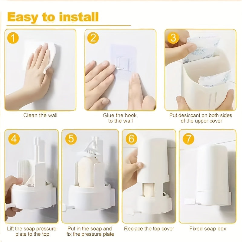 Yaratuvchan devorga o'rnatiladigan sabun maydalagich dispenseri, zanglamaydigan po'lat va plastik bar sabun qirqgichi bilan. O'rnatish uchun teshik ochish shart emas. Uy va mehmonxona hammomlari uchun mukammal.
