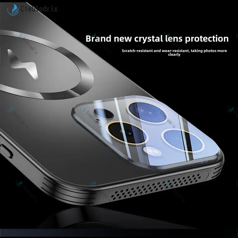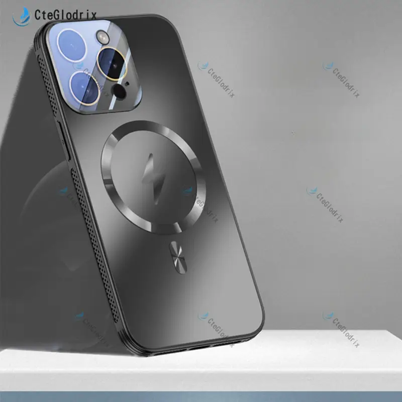 CTeGlodrix Titanium Metallic Matte iPhone telefon qopqog'i zarbaga chidamli xususiyatlari, shisha kamera linzasi va simsiz zaryadlash bilan.