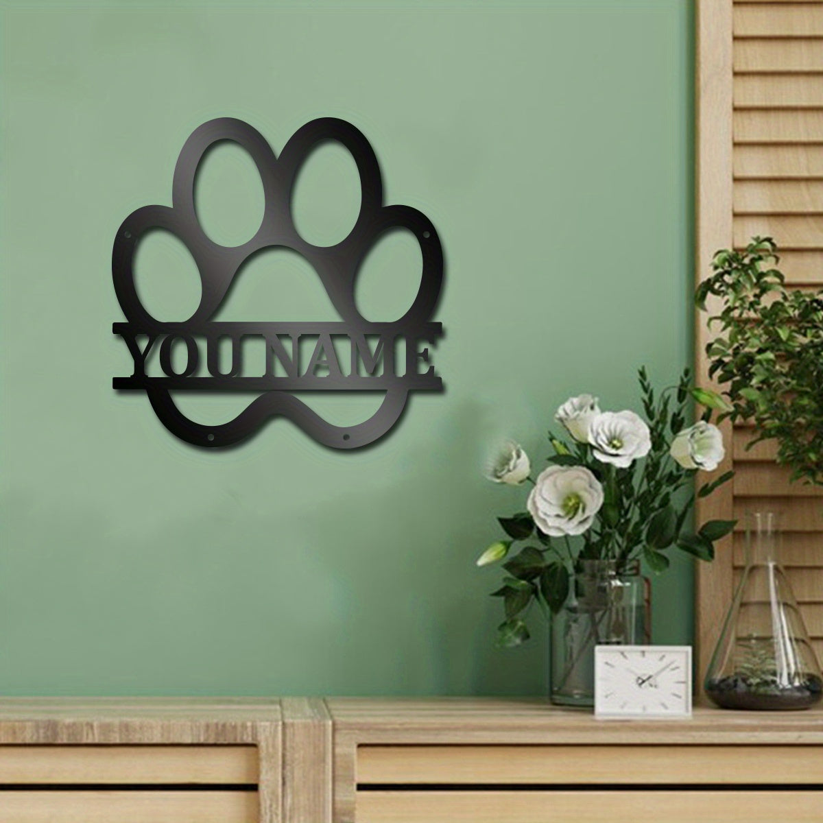 Joyingizni sizning itingizning ismini o'z ichiga olgan shaxsiy metall it panjasi devor san'ati bilan moslashtiring, bu sizning dekoratsiyangizga klassik bir tuyg'u qo'shadi.