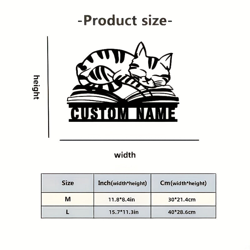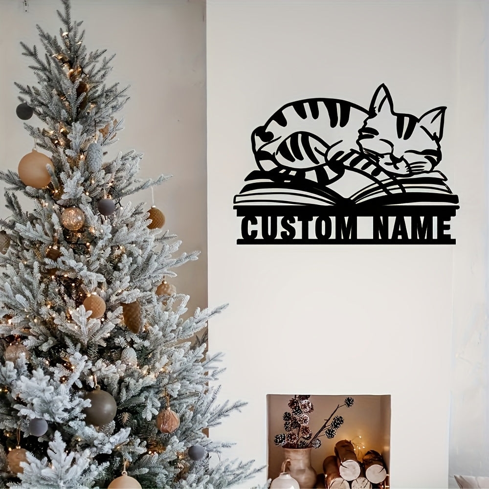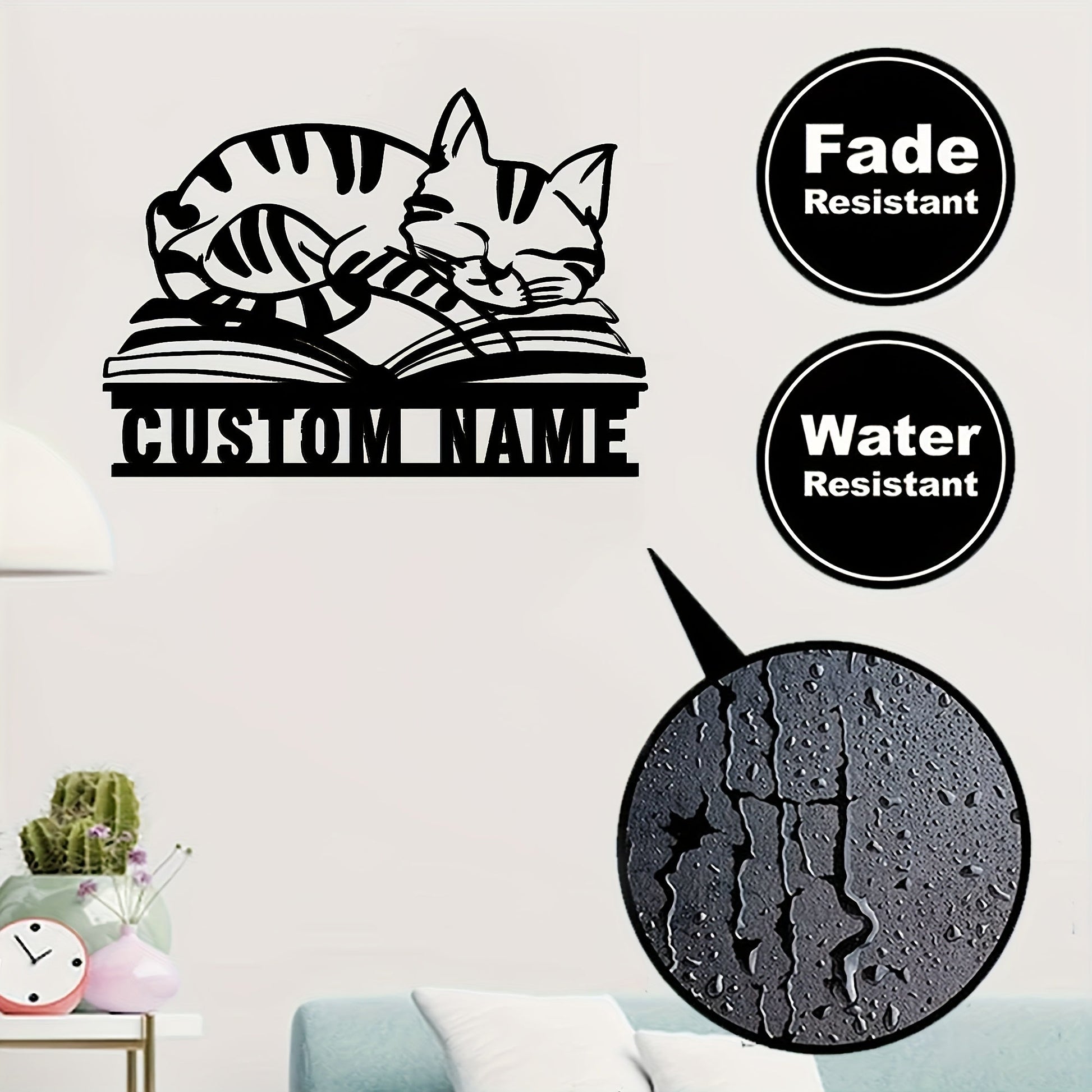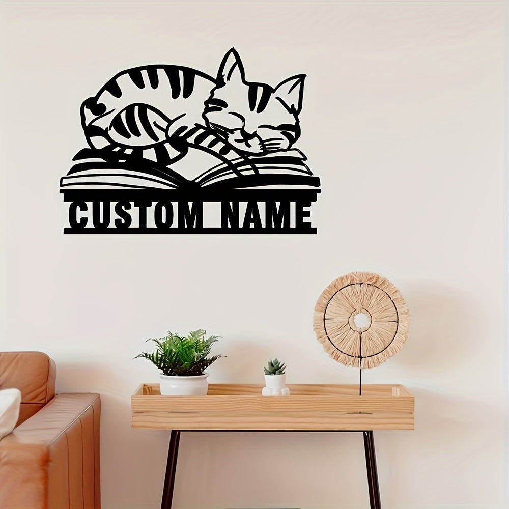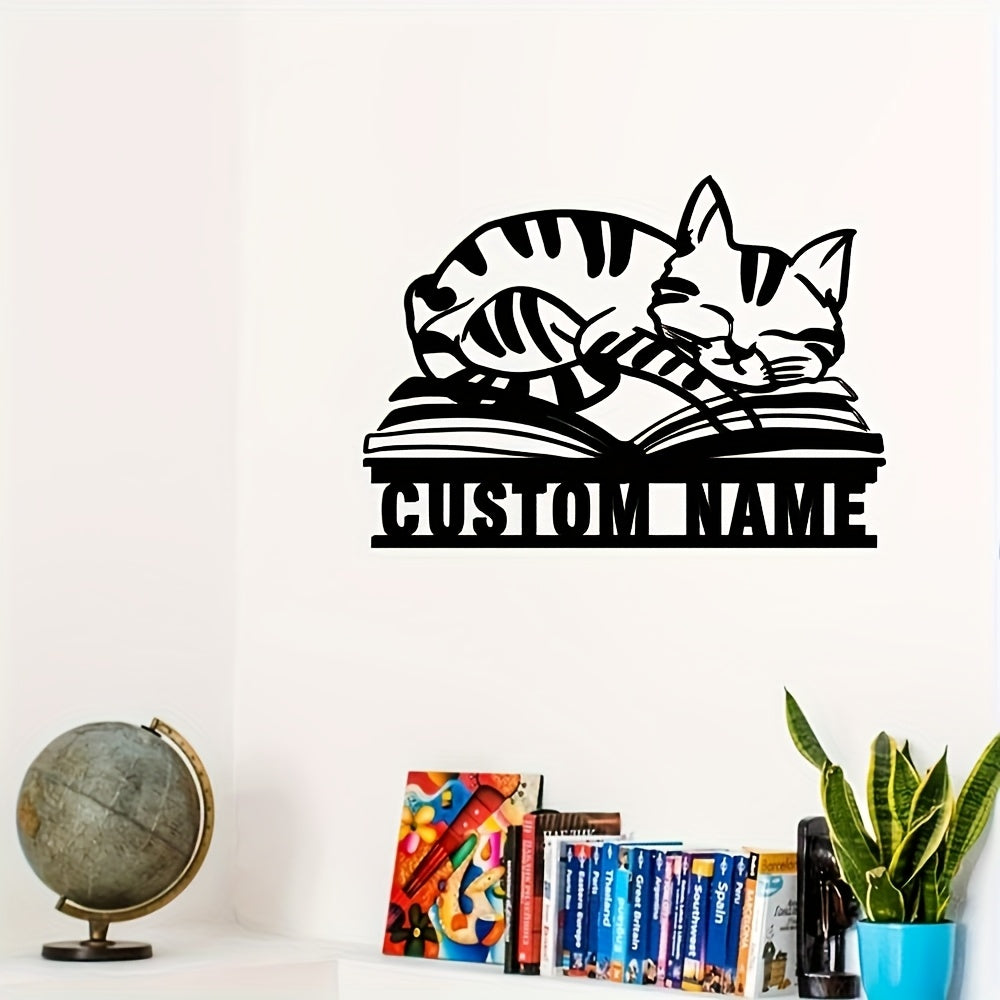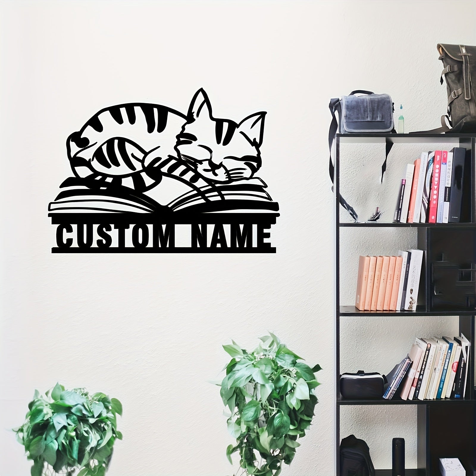 Uy kutubxonasi dekoratsiyasi uchun mushuklar va kitoblar bilan shaxsiylashtirilgan qora temir devor san'ati