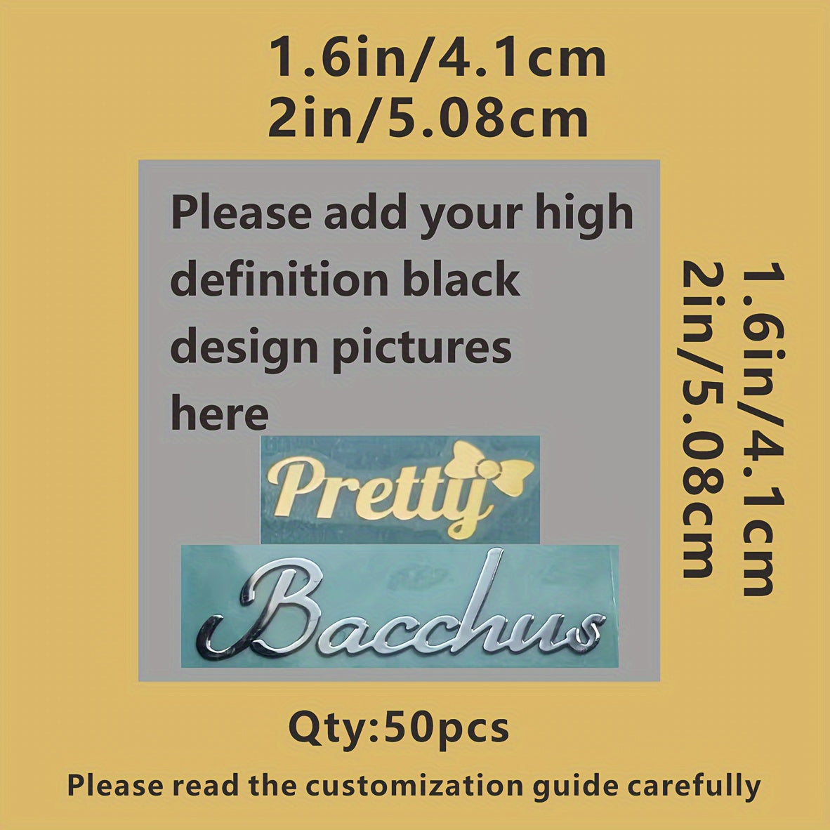 Maxsus elektroplatlangan yorliqlar, stikerlar, logotiplar, 50 ta set, oltin, kumush, 1.6-2 dyuym