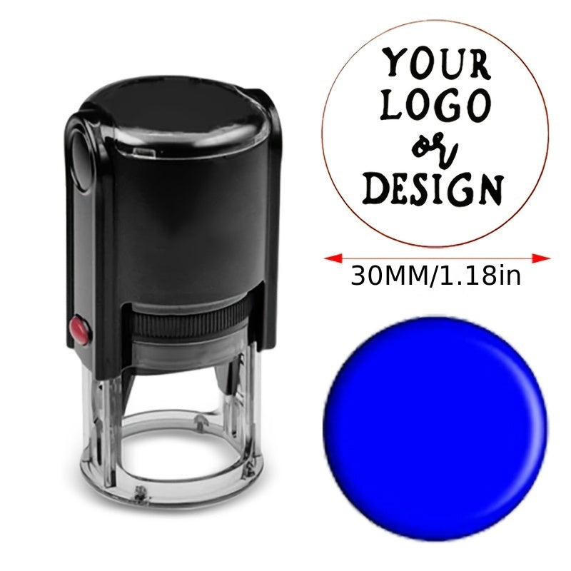 Shaxsiylashtirilgan biznes logotipi va matni bilan moslashtirilgan o'z-o'zidan muhrlaydigan muhr.