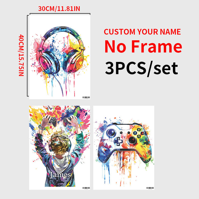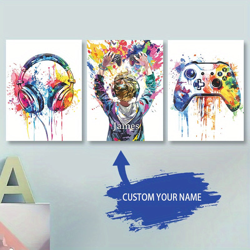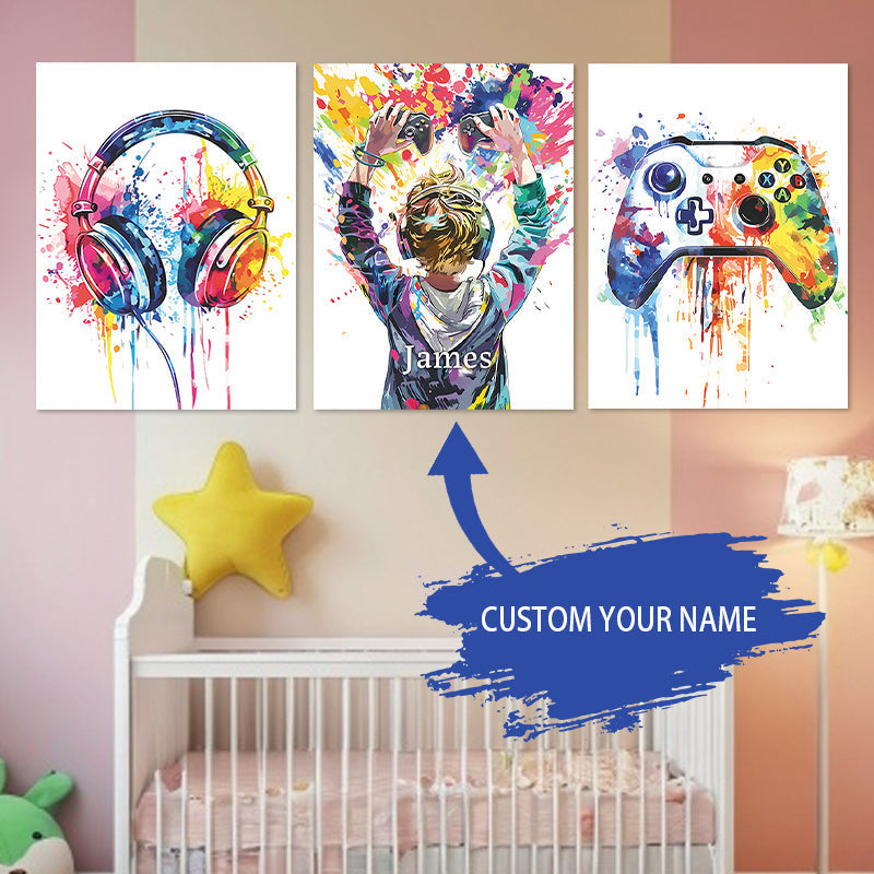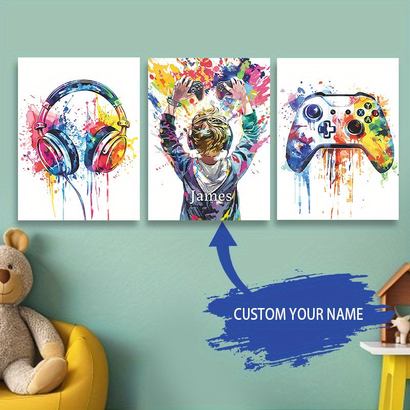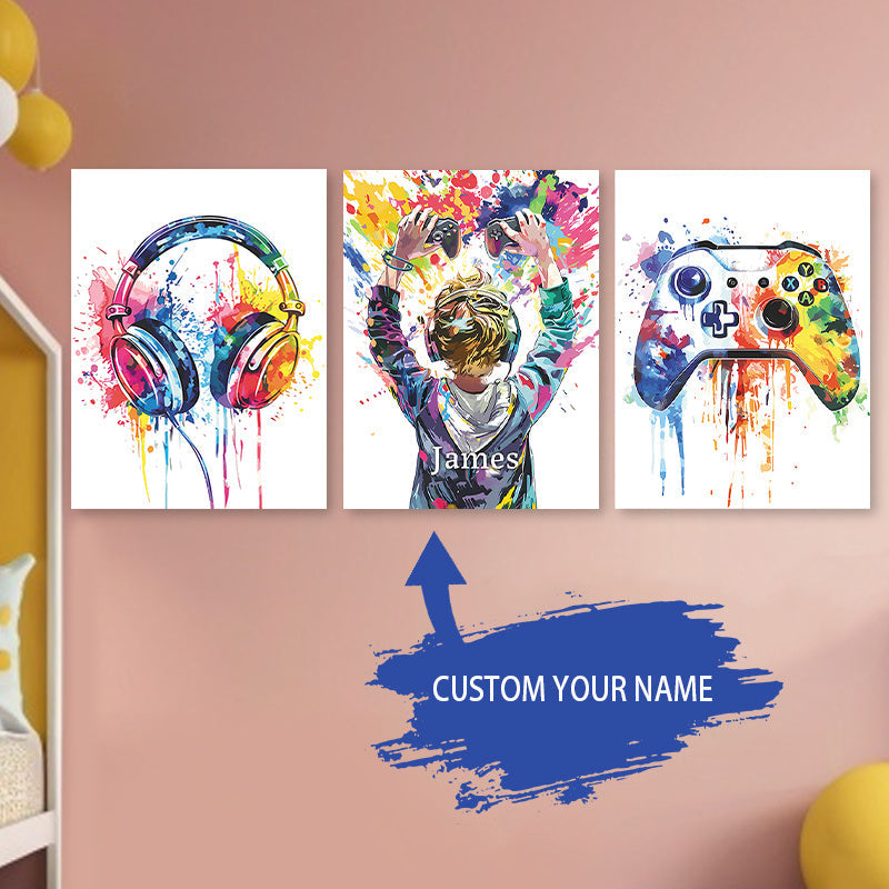 Bolalar xonasi uchun turli ranglarda 3 ta gamer devor san'ati kanvas chop etishlarining moslashtirilgan to'plami