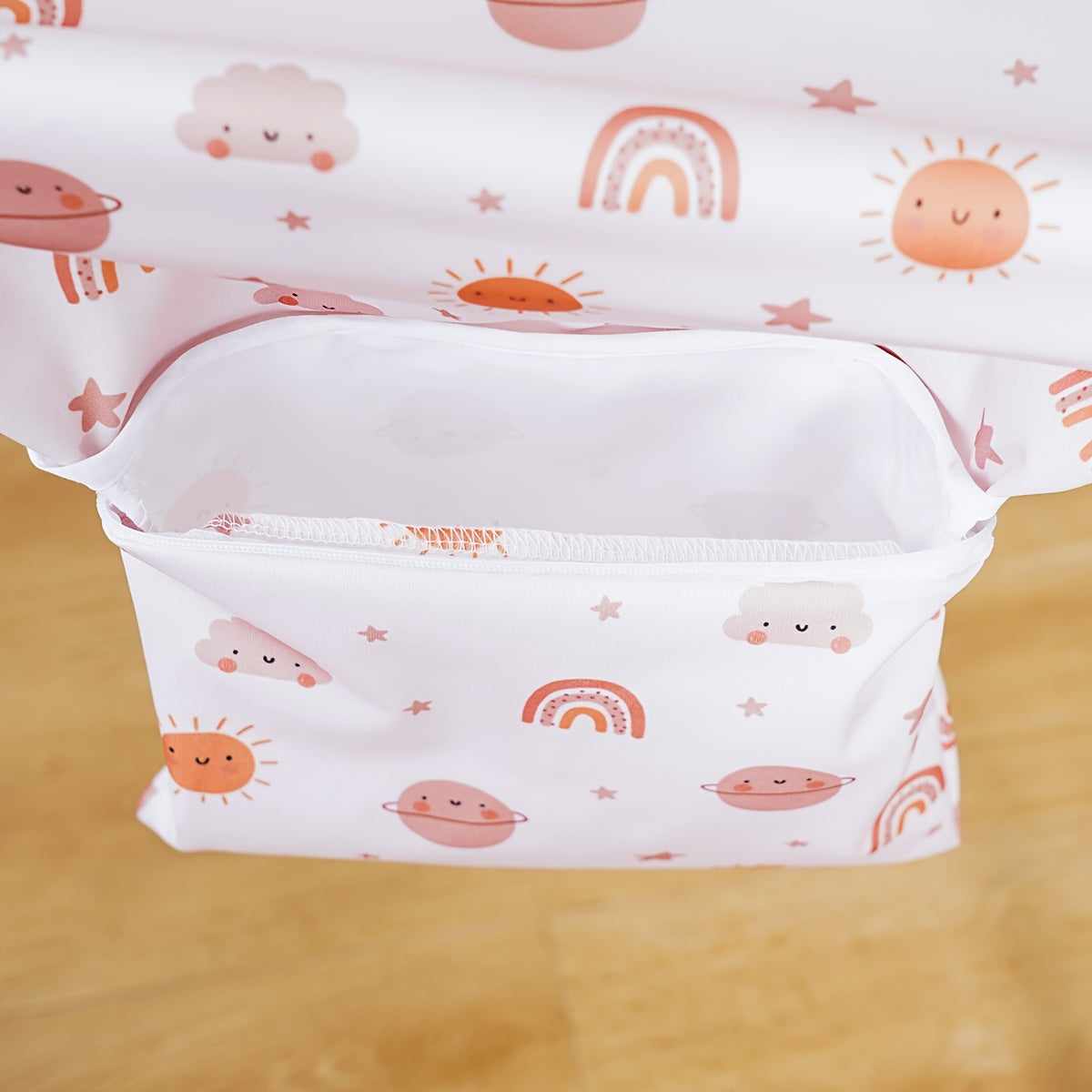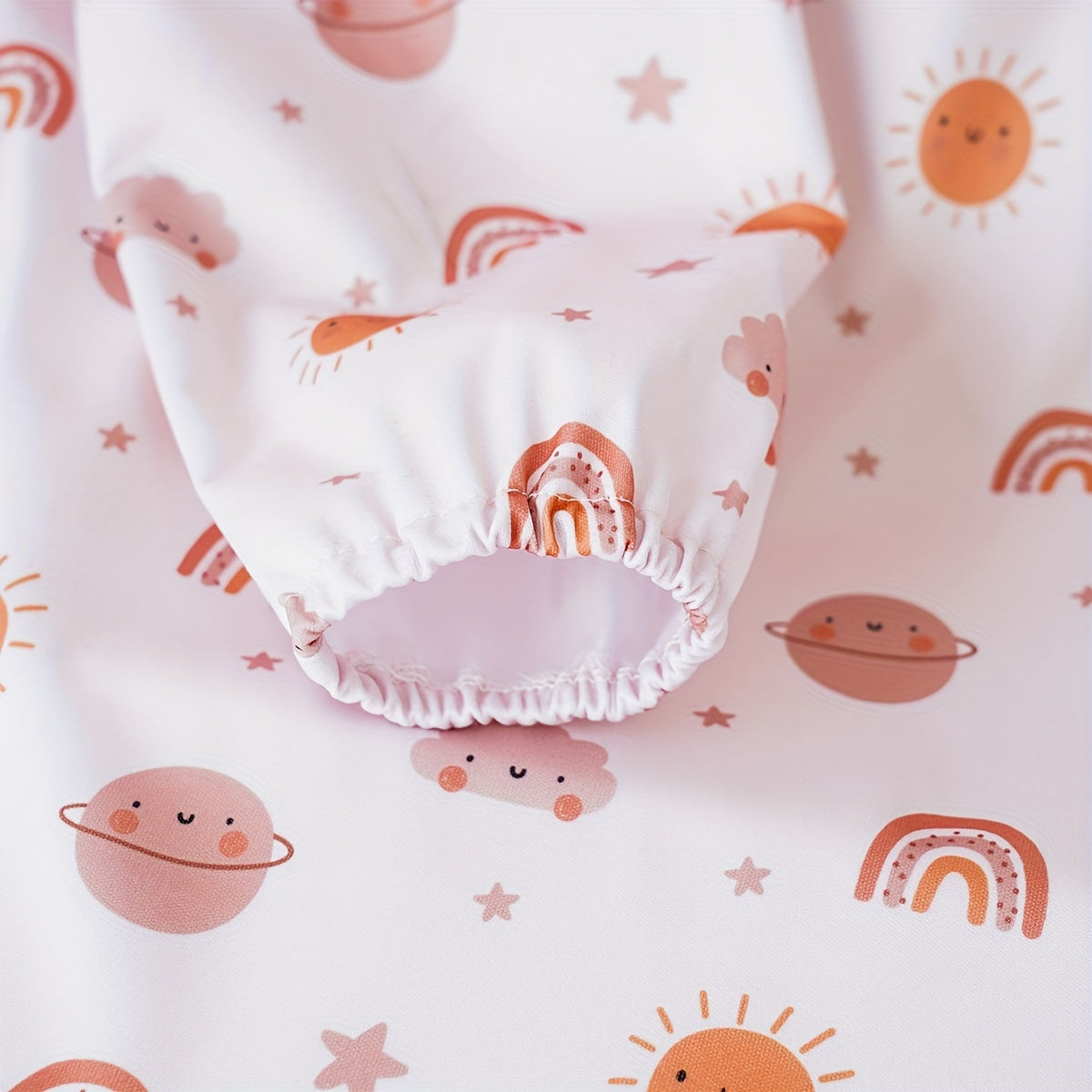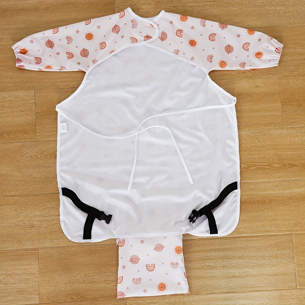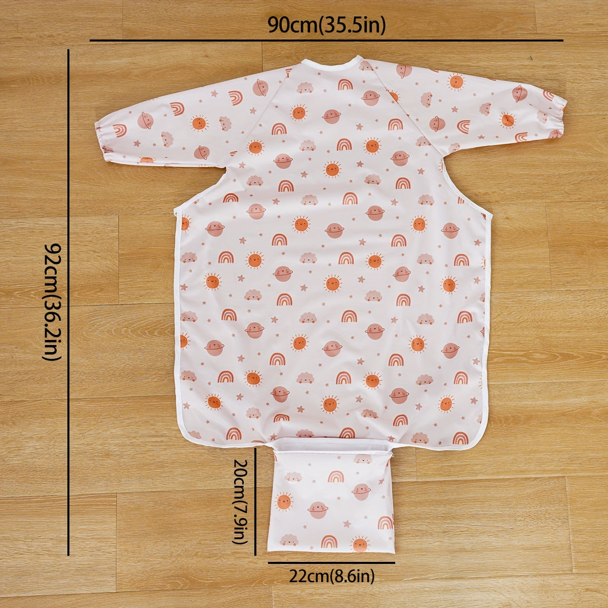 Chiroyli va suv o'tkazmaydigan 3-in-1 Oziq-ovqat stoli qopqog'i - Yuviladigan oziqlantirish bibi va bo'yash aproni bilan birga, Sehrli lenta yopilishi, Poliestir tolalaridan tayyorlangan, turli ranglarda.