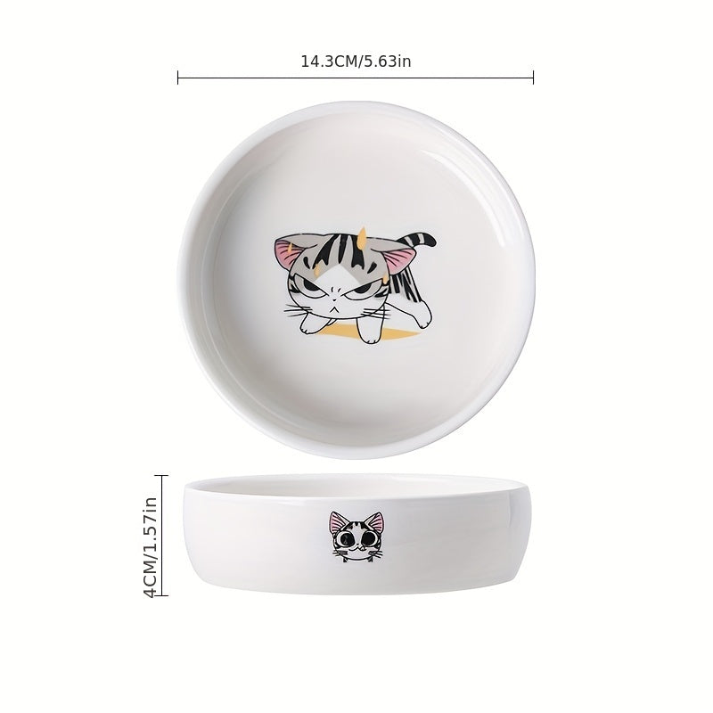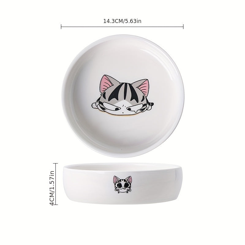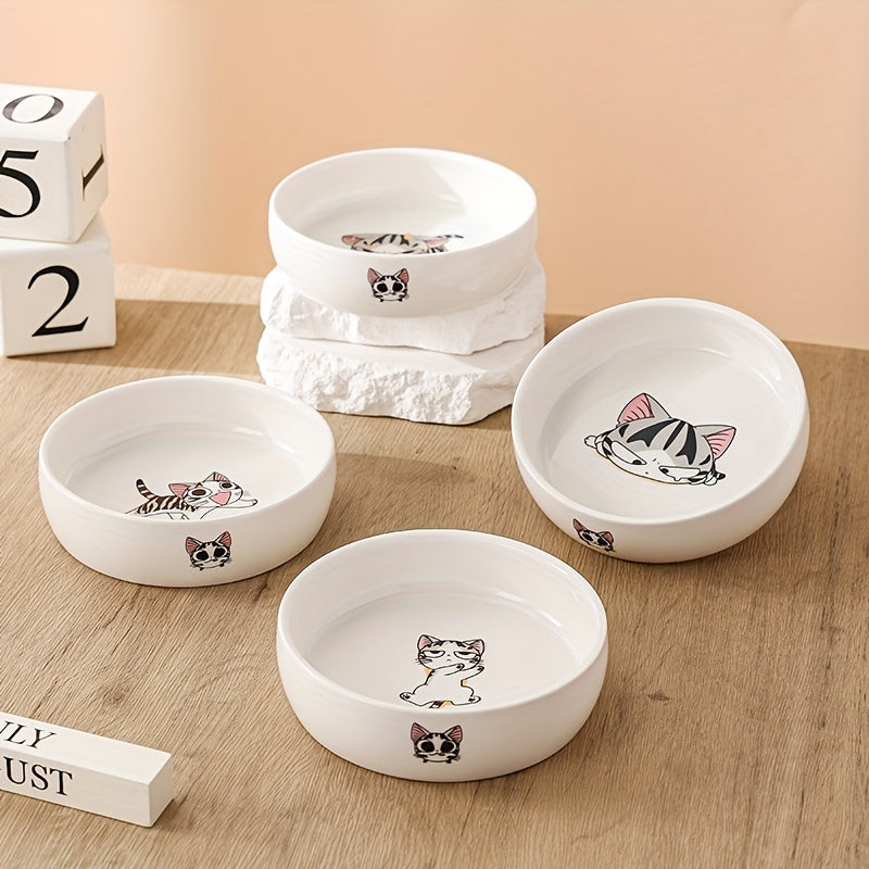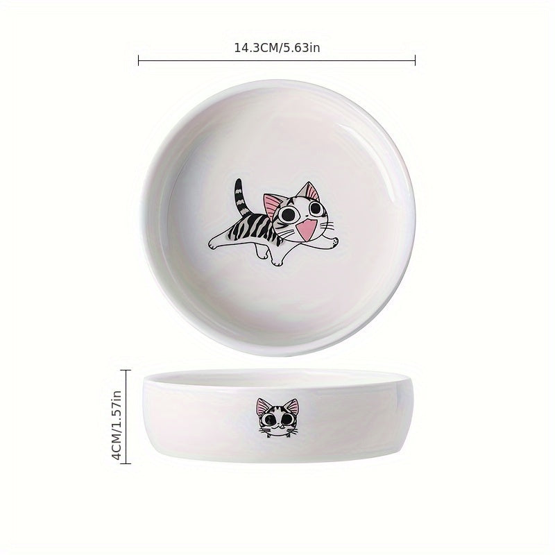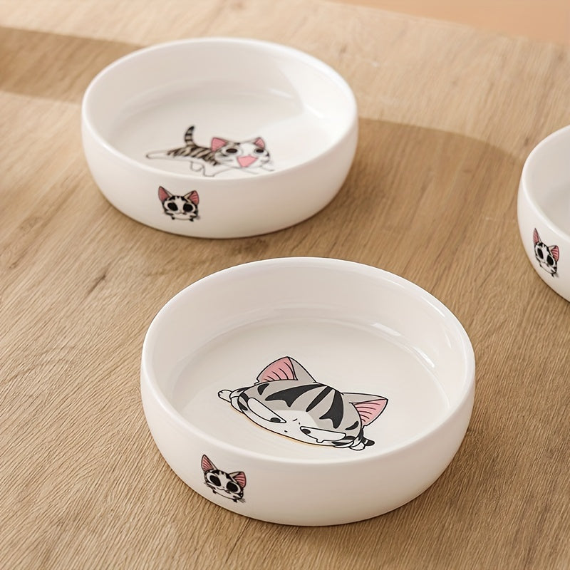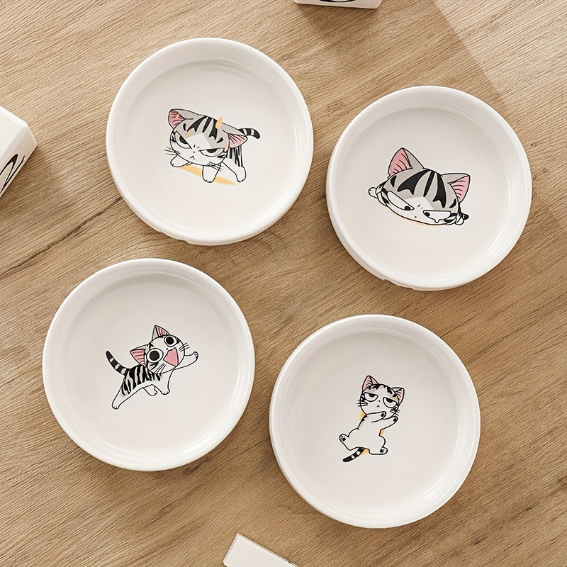 Keramika uy hayvonlari uchun tovoqlar, mushuklar va itlar uchun, sirpanmaydigan, multfilm mushuk tasviri bilan, bardoshli ovqat va suv idishi