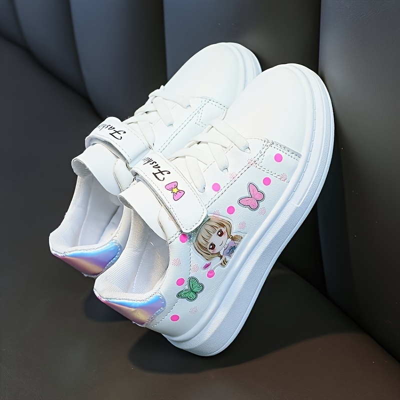 Qizlar uchun chiroyli multfilm krossovkalari, yengil va sirpanmas, yil davomida ochiq havoda faoliyatlar uchun.