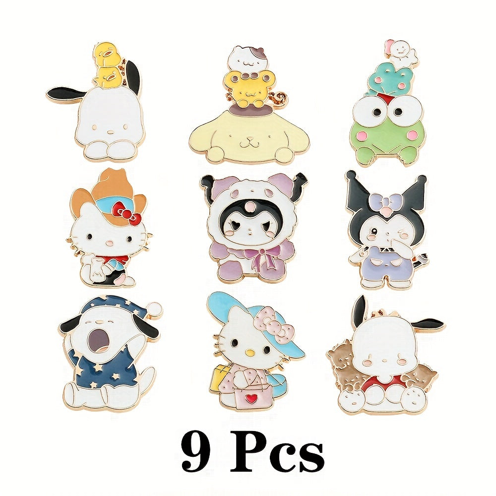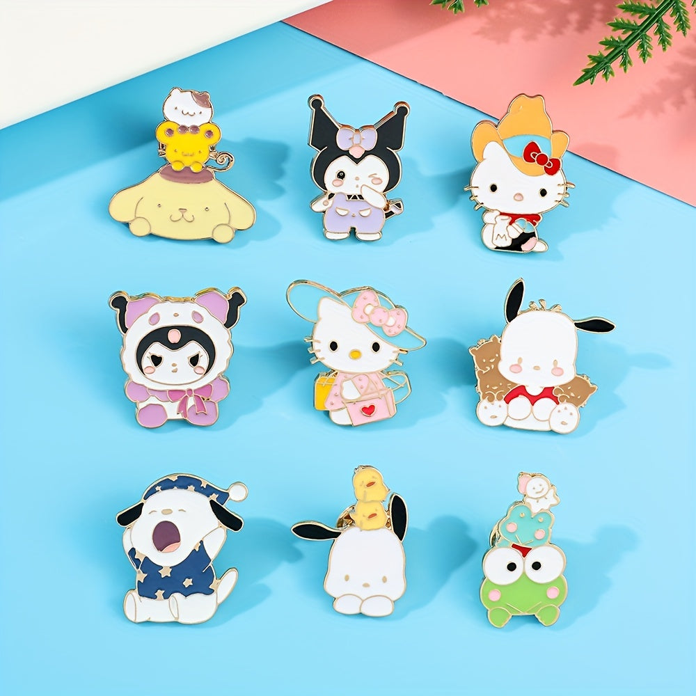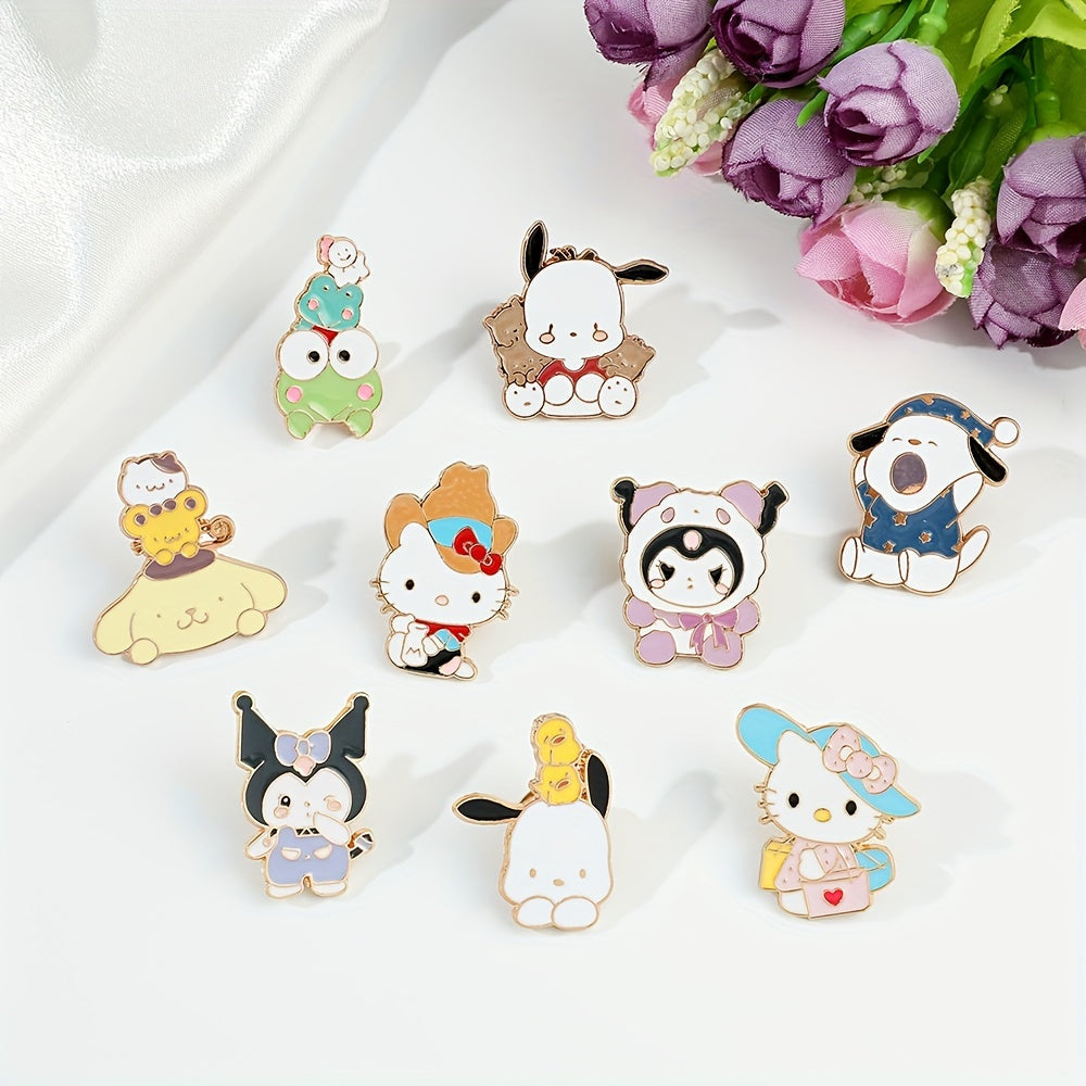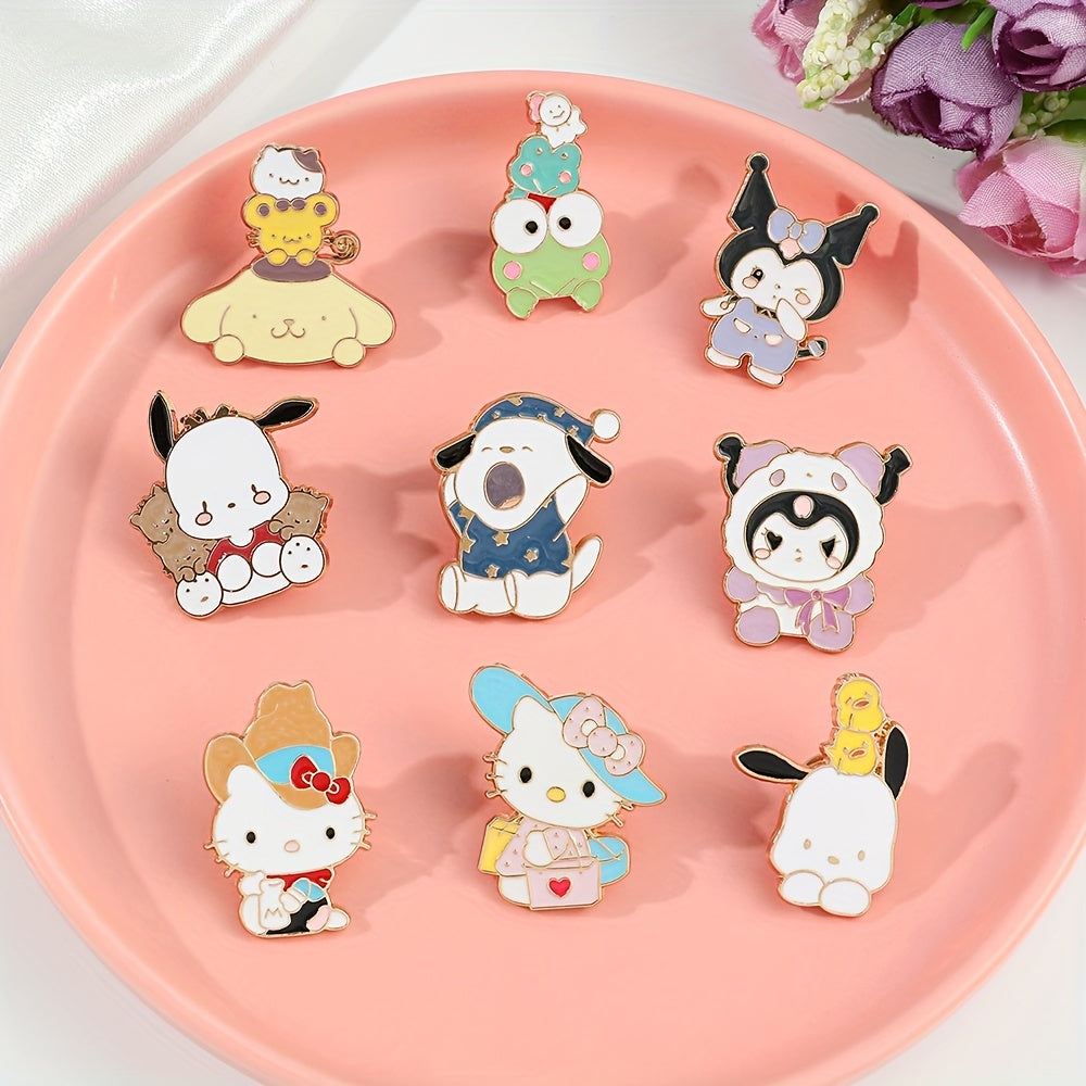 9 ta multfilm hayvonlar broshlari to'plami, zirkoniy bilan bezatilgan emalli zink alloy aksessuarlari kiyim va sumkalar uchun