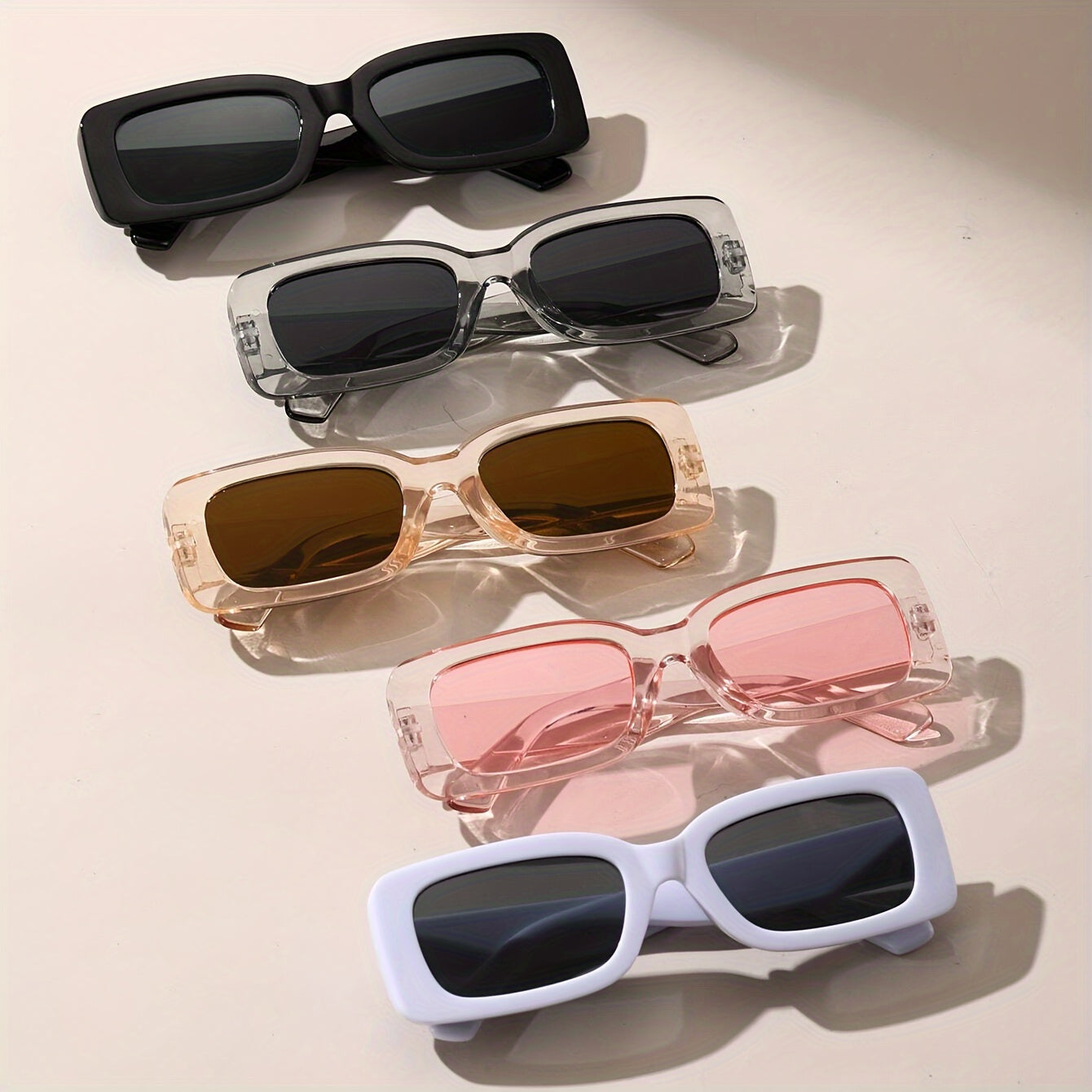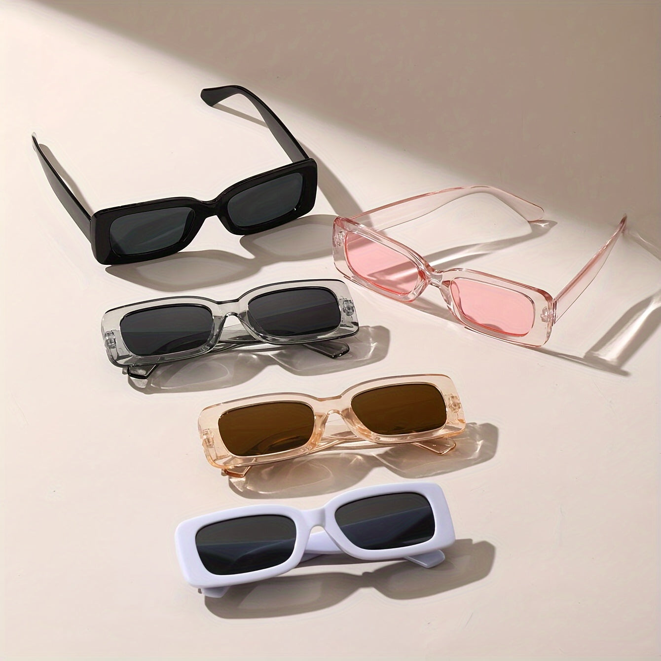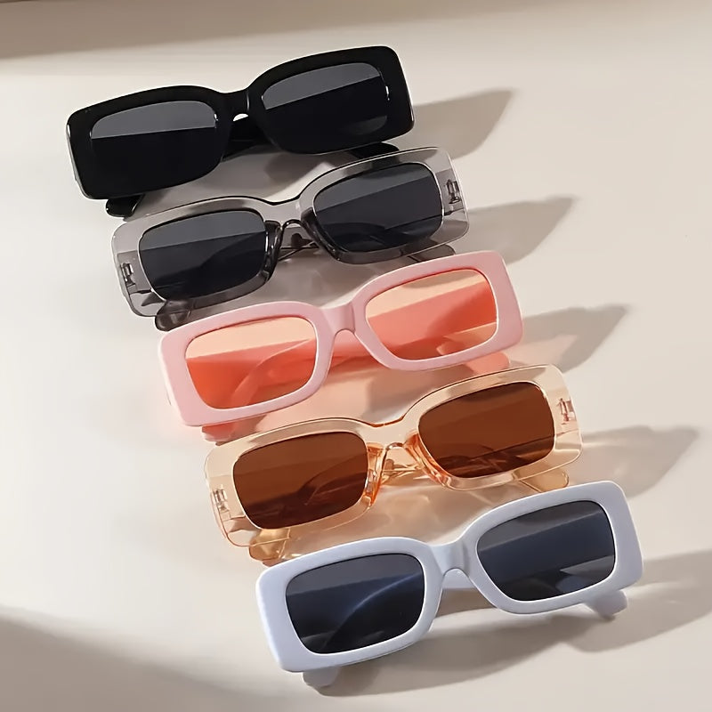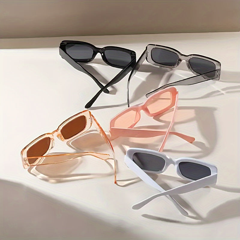 5 ta uniseks kvadrat moda ko‘zoynaklar to‘plami, to‘liq ranglar va Y2K uslubi bilan