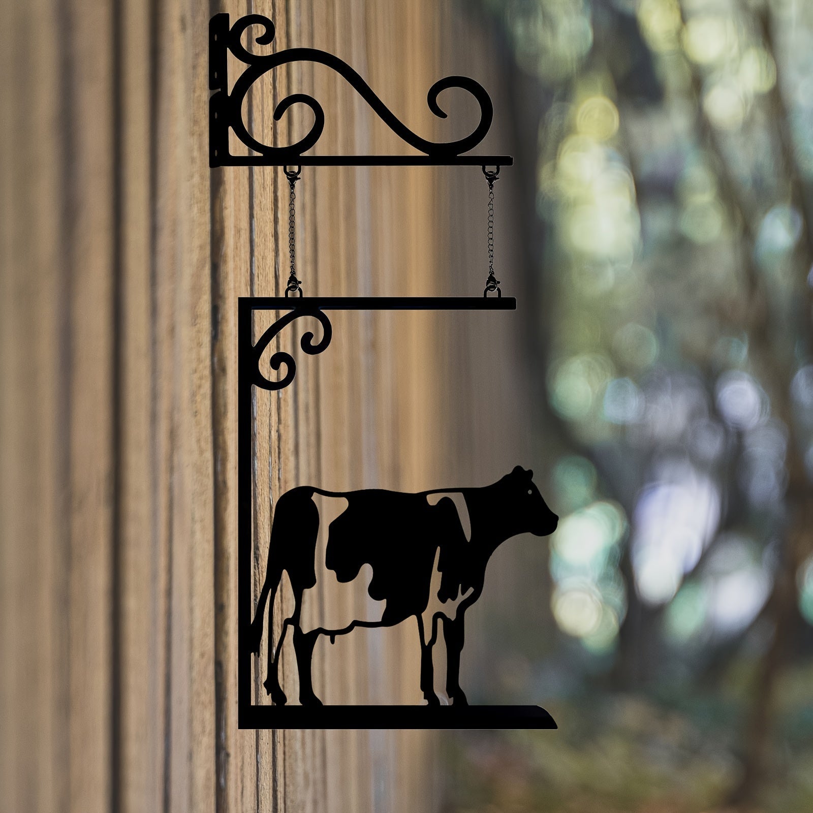 Uyingizning yashash xonasi, yotoq xonasi, balkon yoki hovlisini ushbu noyob Ferma Sigir Darvoza Belgisi bilan bezang. Ushbu g'ayrioddiy sigir devor bezaklari bilan joyingizga ijodkorlik va joziba qo'shing.