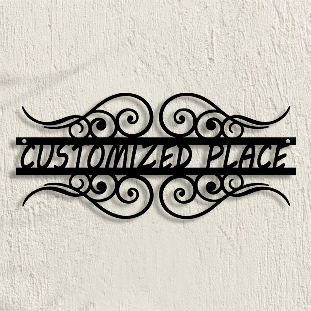Qora po'latdan tayyorlangan dekorativ xush kelibsiz belgisi, eshik tutqichi, moslashtiriladigan metall kirish san'ati, verandaga va uy manziliga