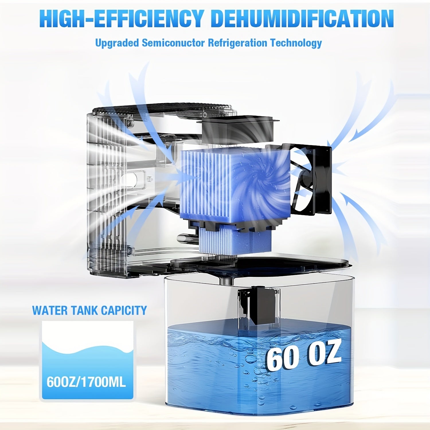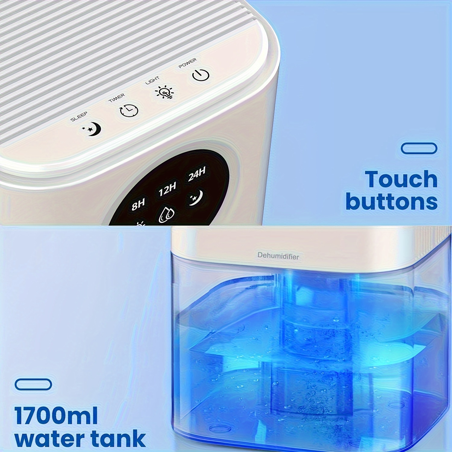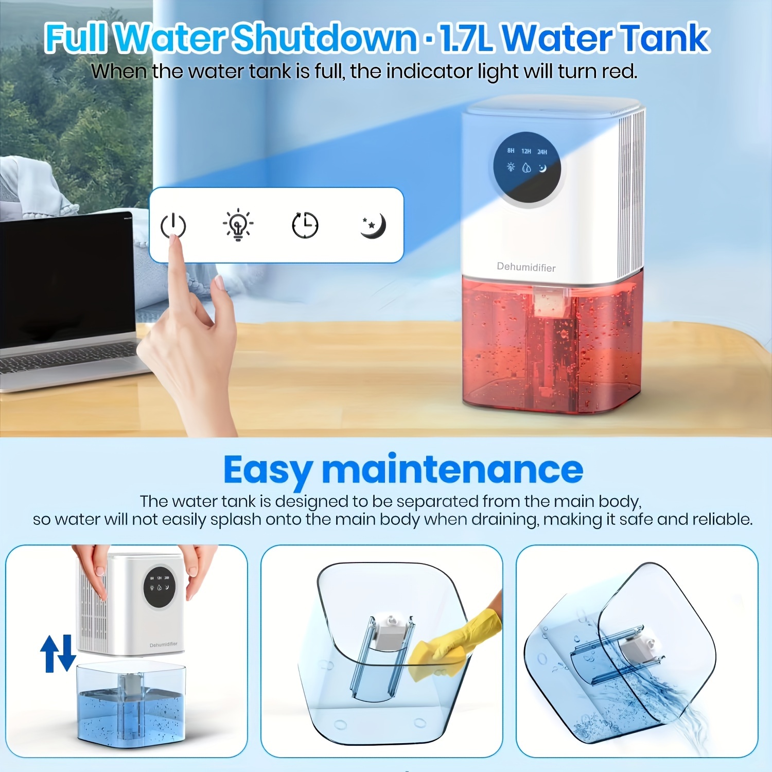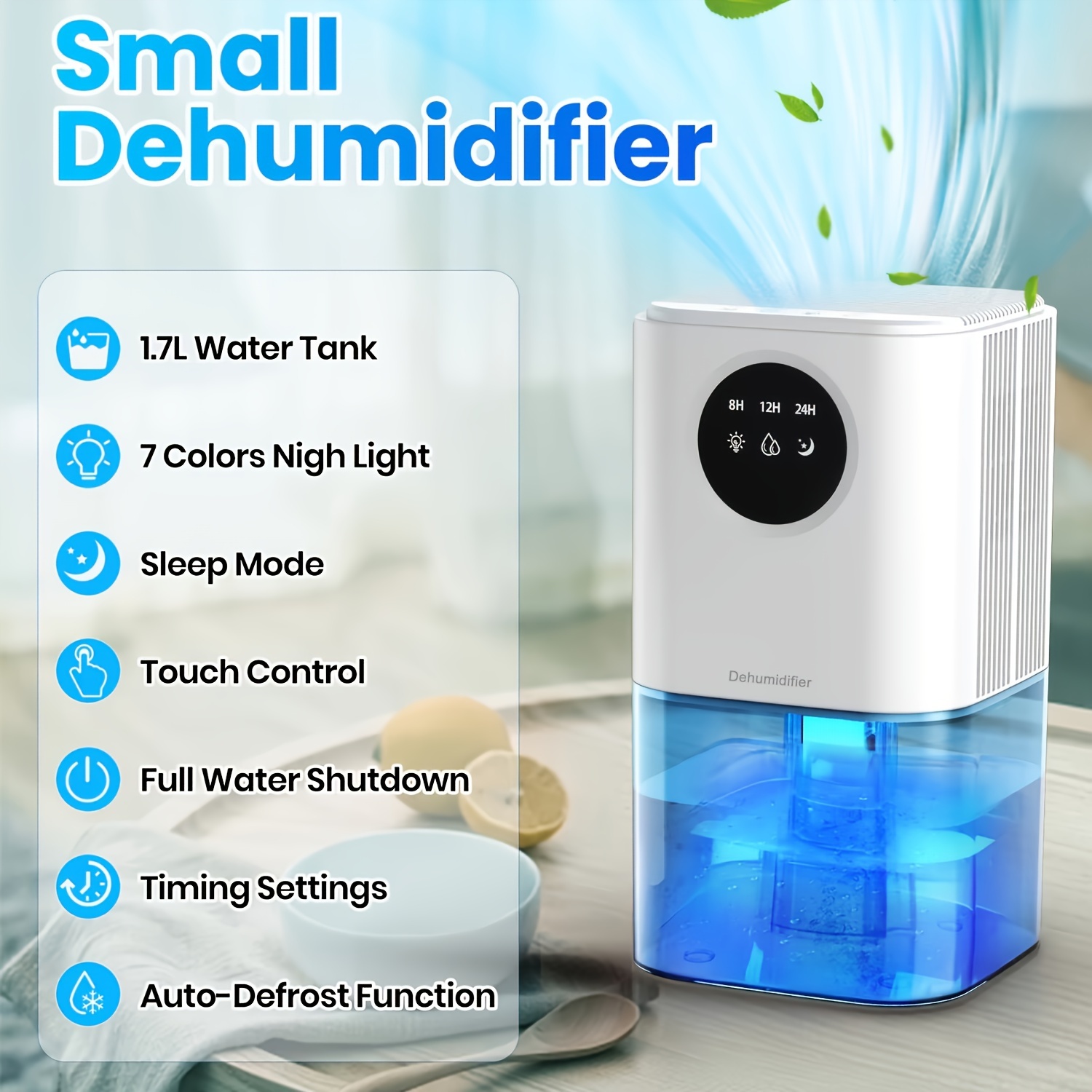 7-Color LED Yoritgich bilan namlikni olib tashlovchi 1700ml sig'imli, shovqinsiz, taymerli, simsiz