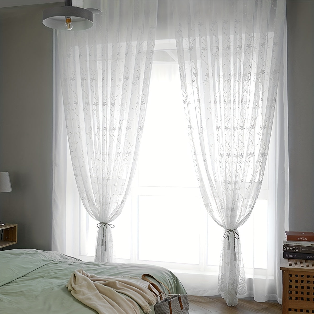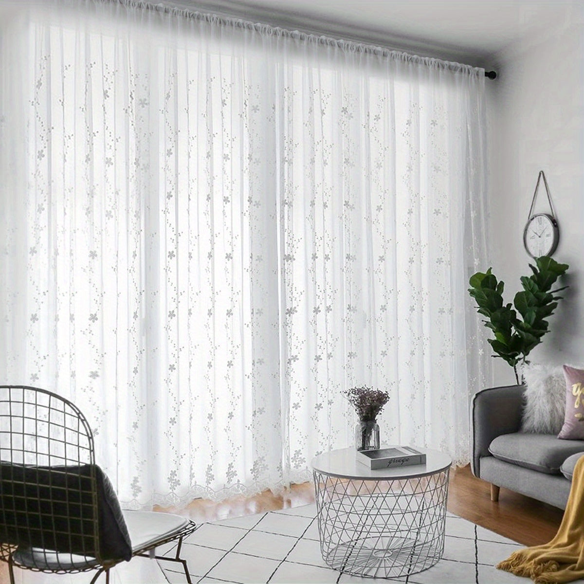 Nozik Oq Shaffof Pardalar, Kichik Romantik Gul Tikişlari Bilan, Yashash Xonasi, Yotoqxona, Ofis yoki Uy Bezash Uchun Mukammal. Oson O'rnatish Uchun Rod Pocket Bilan Keltiriladi.