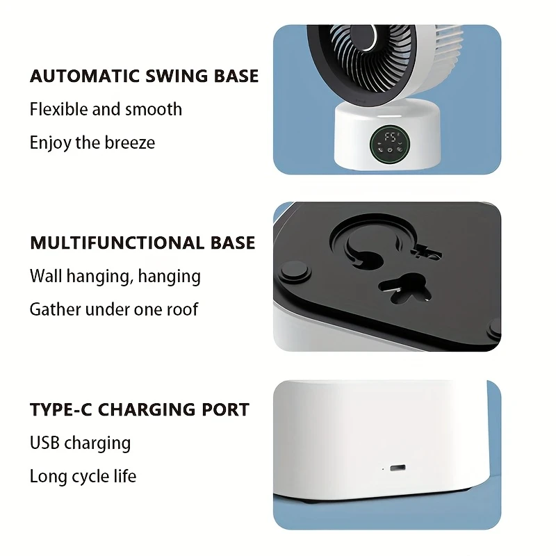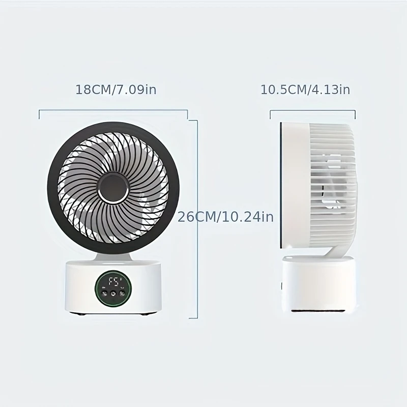 Varaqali va shovqinsiz Desktop Air Circulation Fan, uy, yotoqxona, oshxona va hojatxona uchun mos. Kuchli havo oqimi va past shovqinni ta'minlaydi, 3-in-1 stol sifatida ishlaydi.
