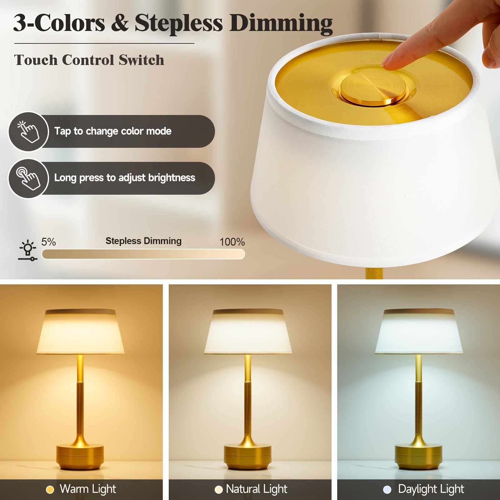 Yorug'likni sozlash mumkin bo'lgan LED stol lampasi, moslashuvchan gooseneck va teginish nazorati bilan, 3 ta rang harorati va qayta zaryadlanadigan 2000mAh batareyani taklif etadi. Uni yashash xonasida, yotoqxona va ofisda ishlatish mumkin.