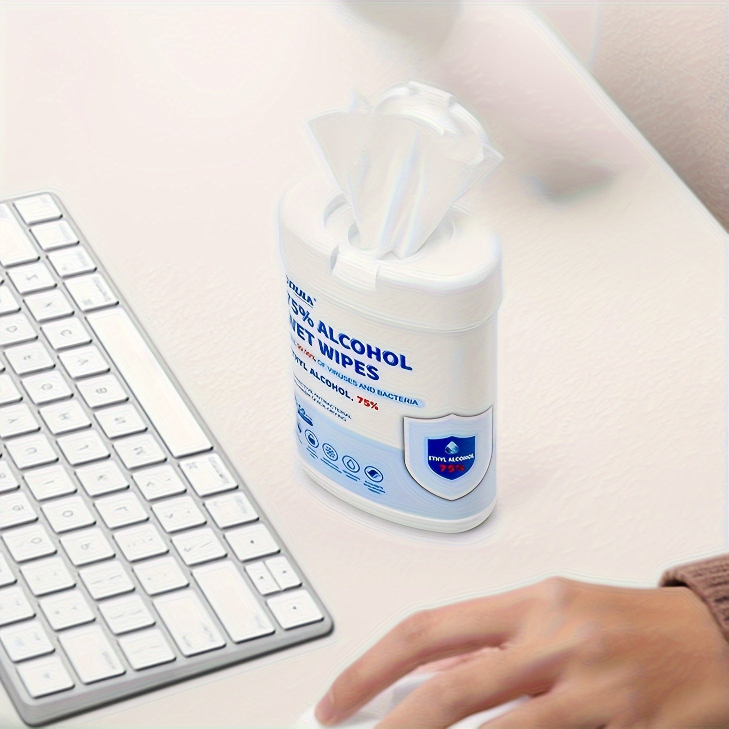 75% alkogolni o'z ichiga olgan dezinfektsiyalovchi matolar, 50 dona - Uyda va ochiq havoda foydalanish uchun mos, elektronika, zargarlik buyumlari, mebel va avtomobil o'rindiqlarini tozalash uchun ajoyib.