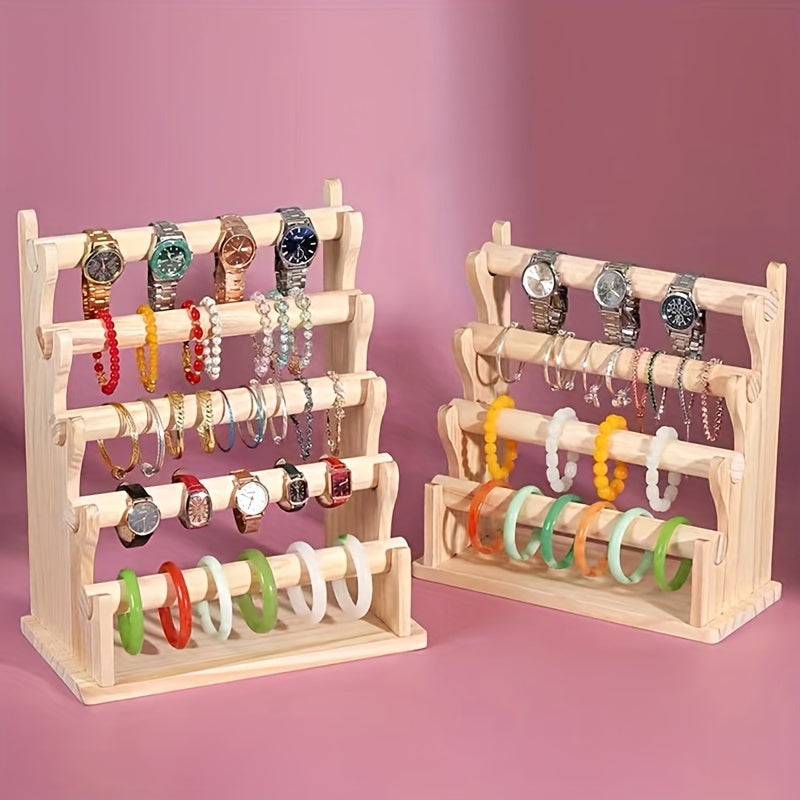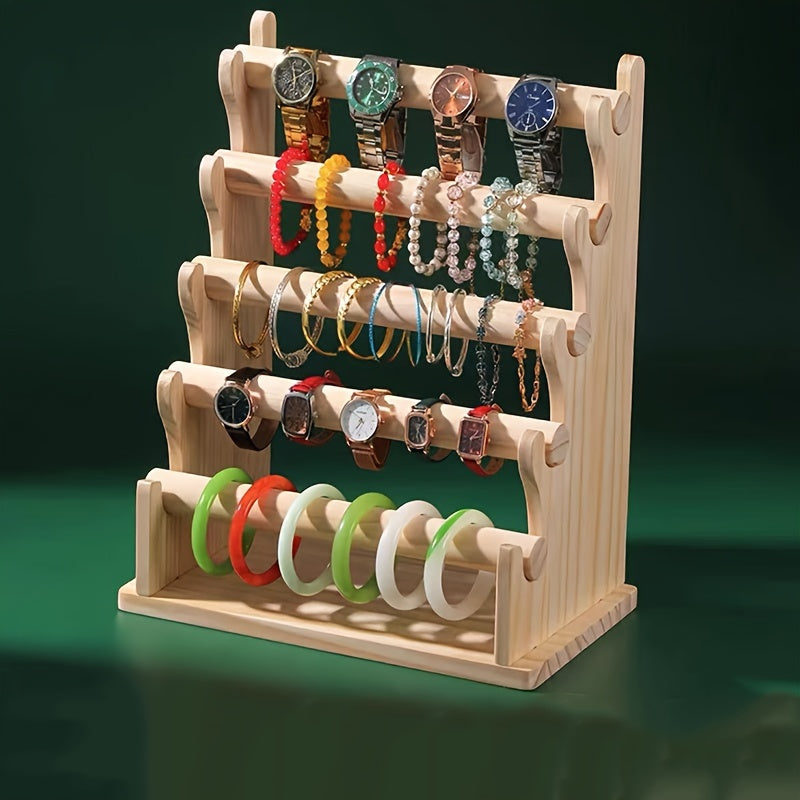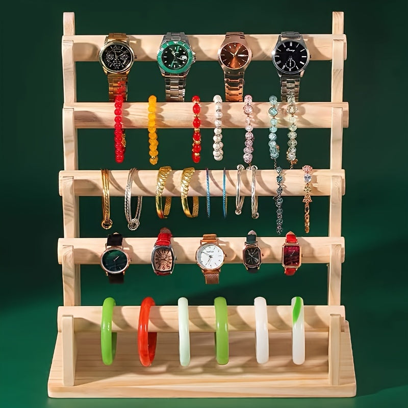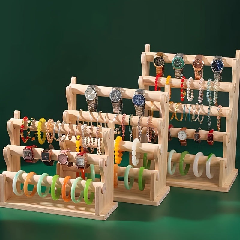 Yog'och zargarlik buyumlarini saqlash racki, bilaguzuklar, soatlar va soch aksessuarlari uchun