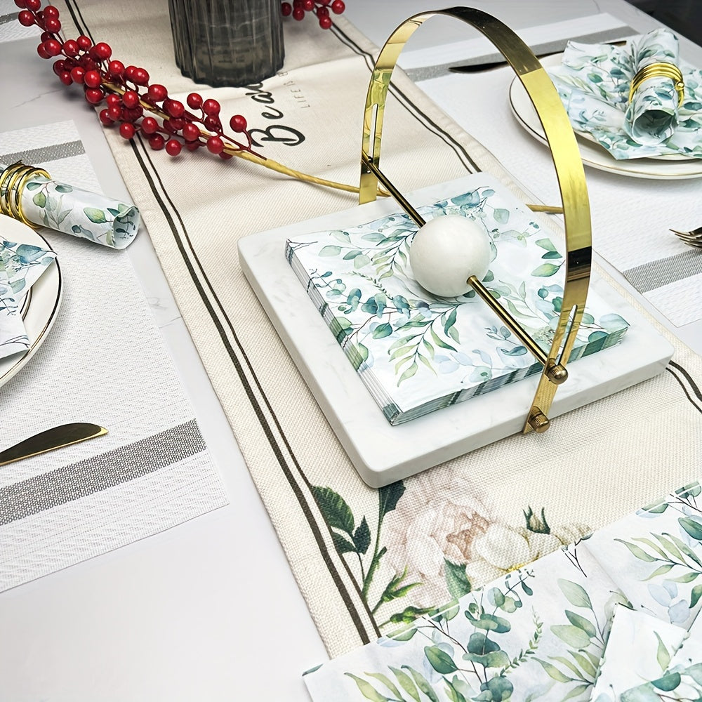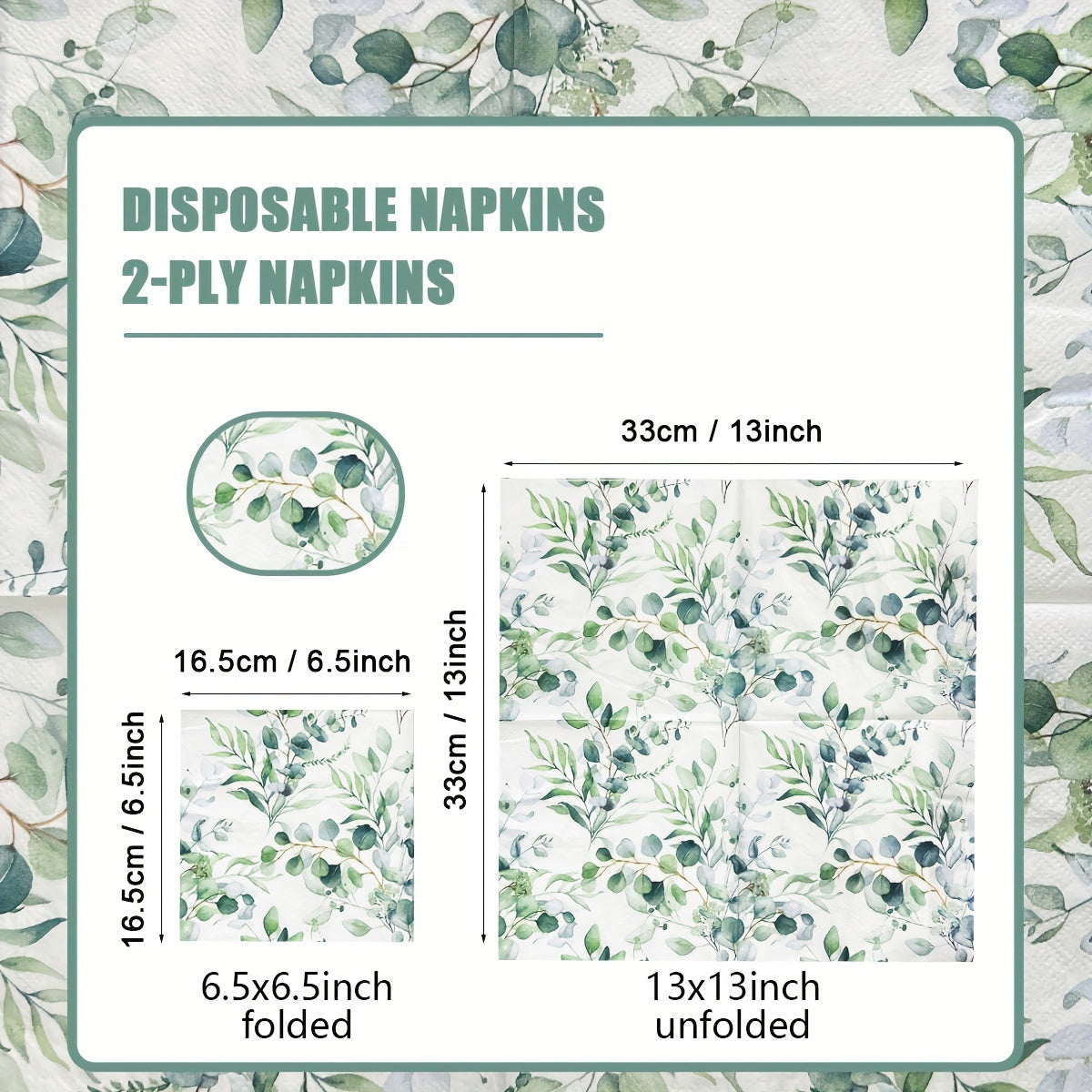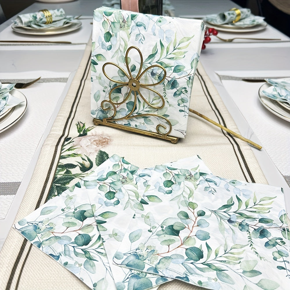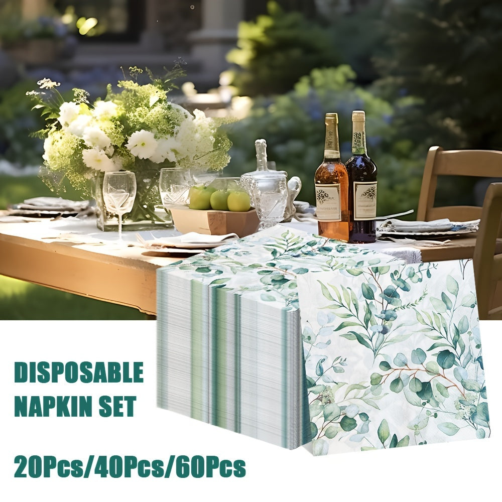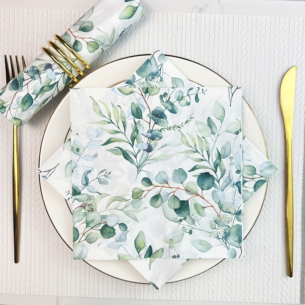 Qayta ishlatiladigan salfetka to'plami, Eucalyptus bargi bosimi, 20, 40, 60 ta, 2-qavatli, 33 sm