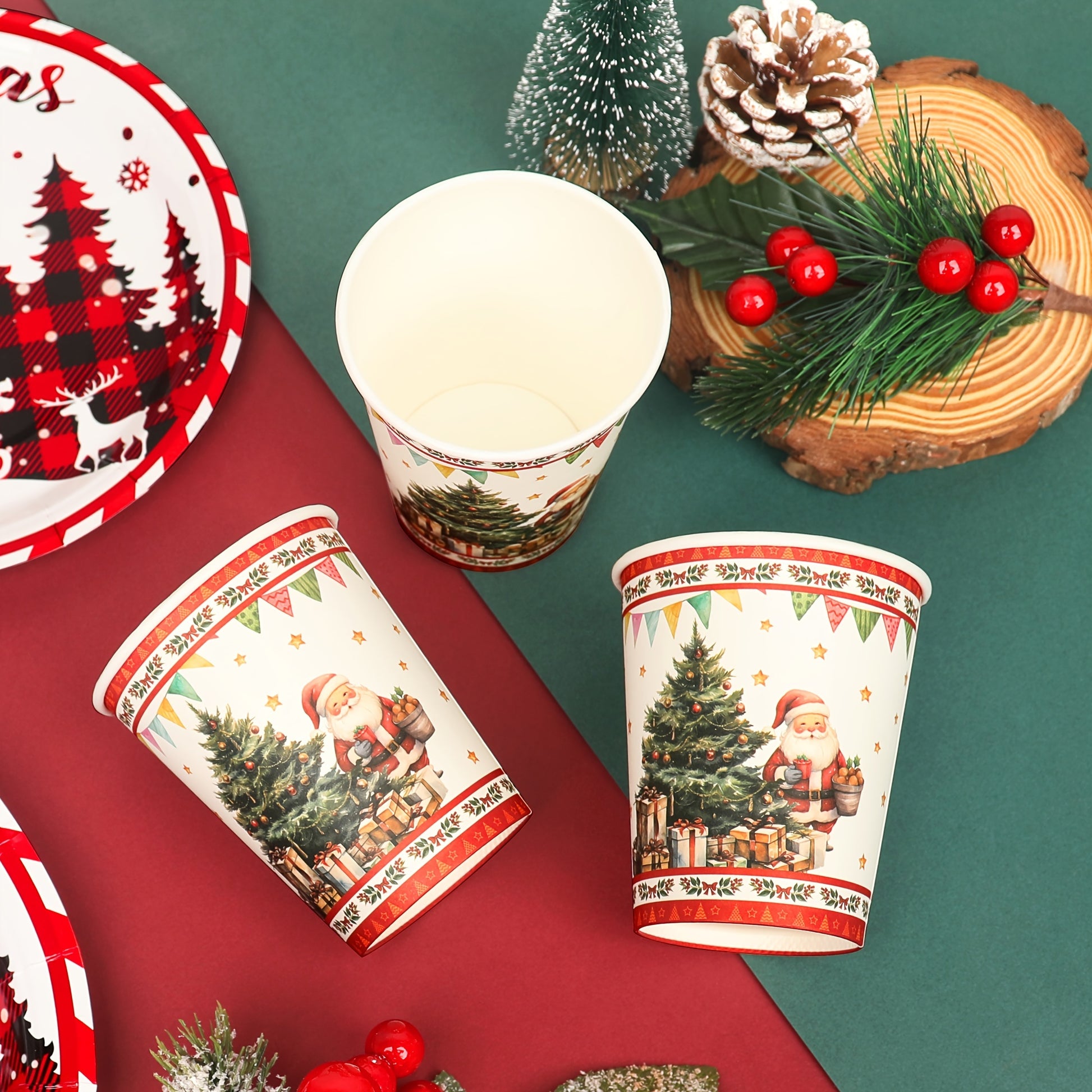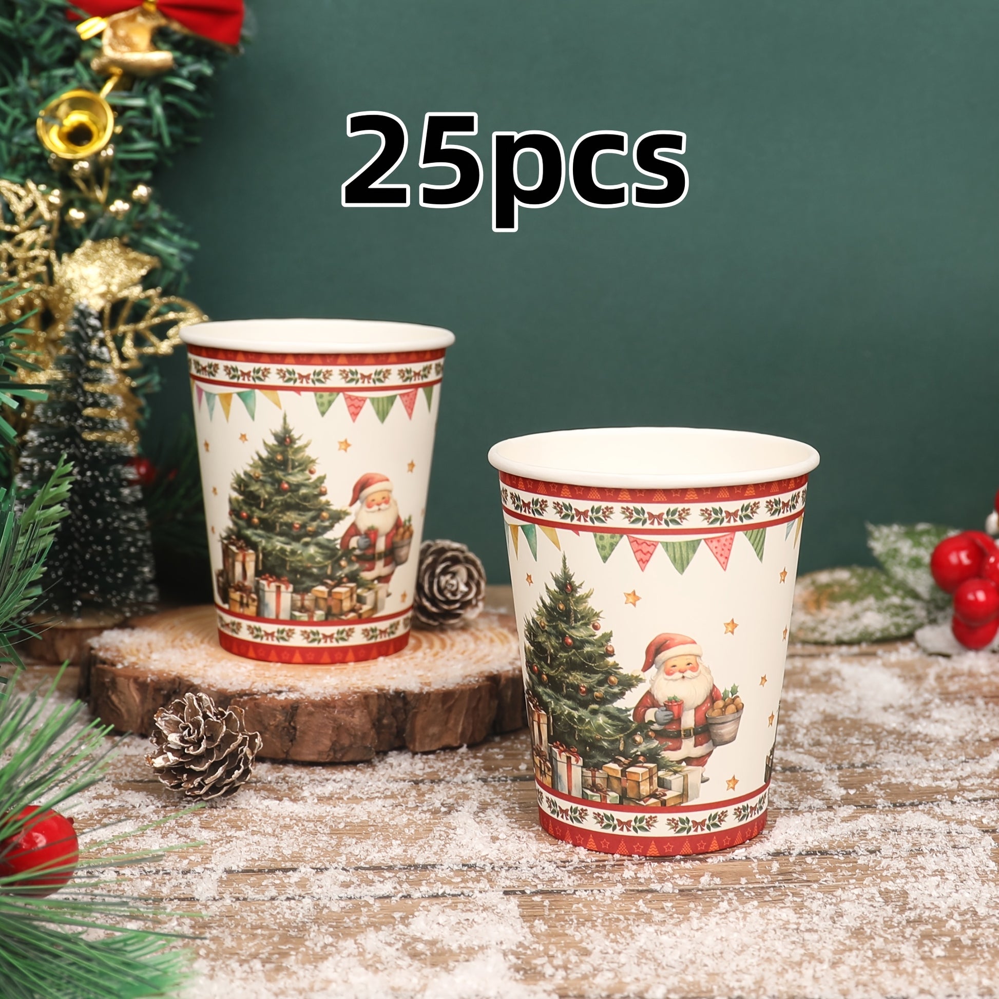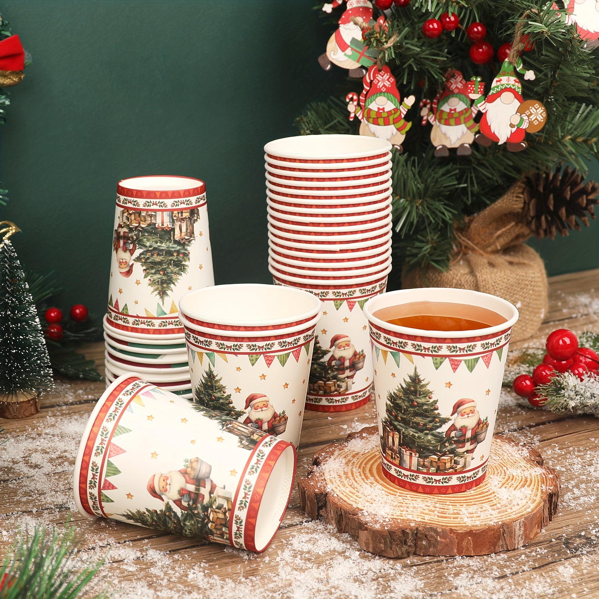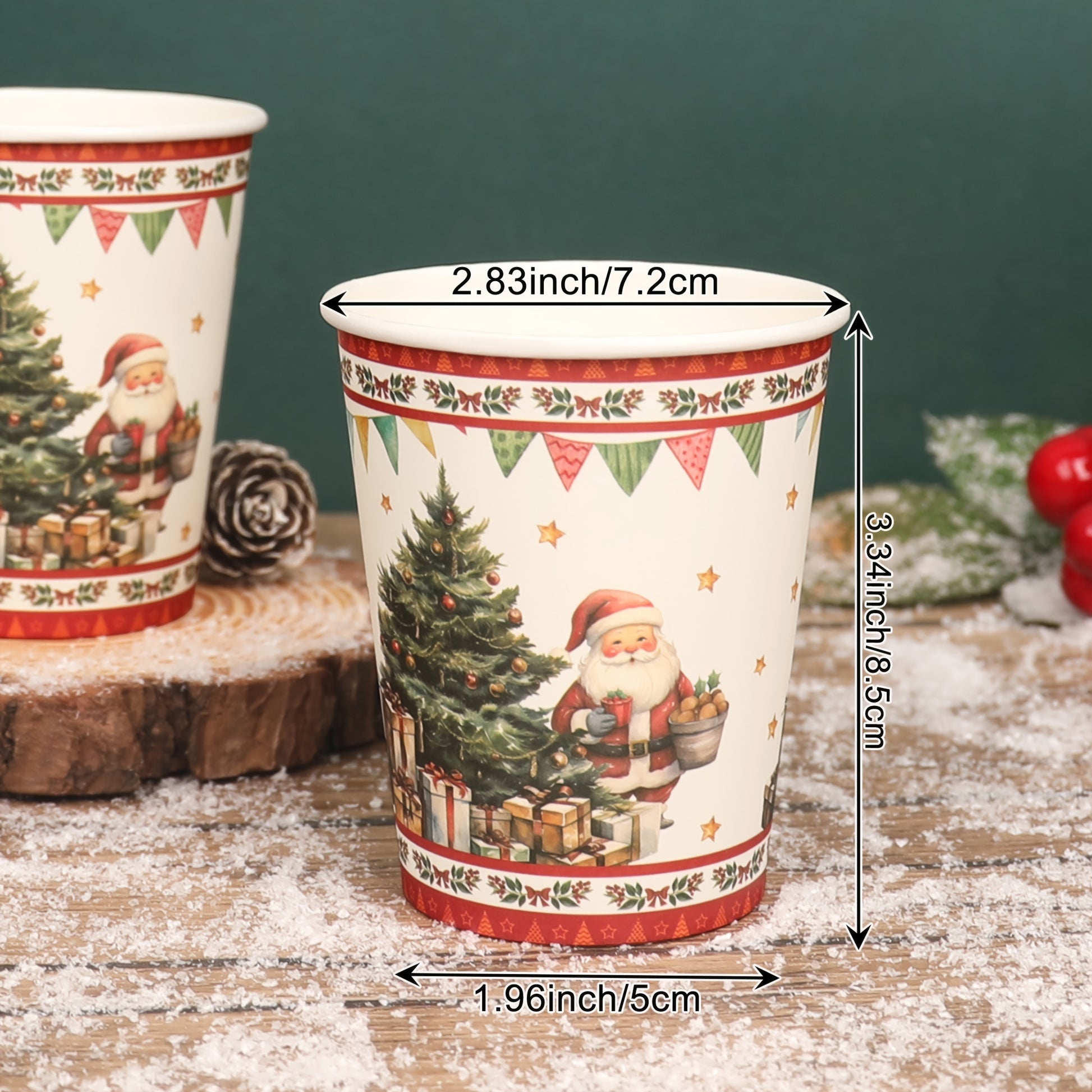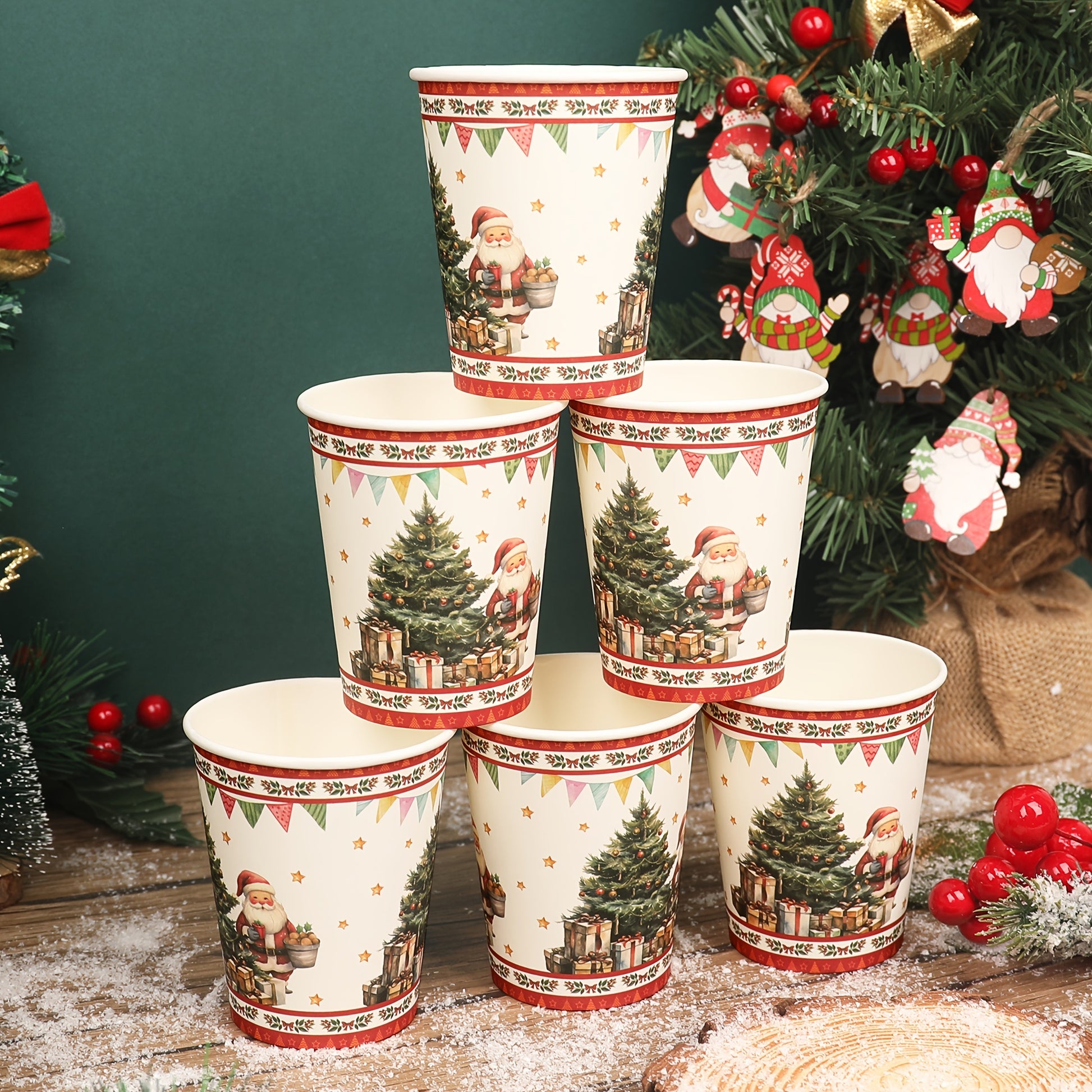 Qog'ozdan yasalgan bir martalik chashka Rojdestvo daraxti va Eski odam naqshli bayram kechasi uchun 8oz