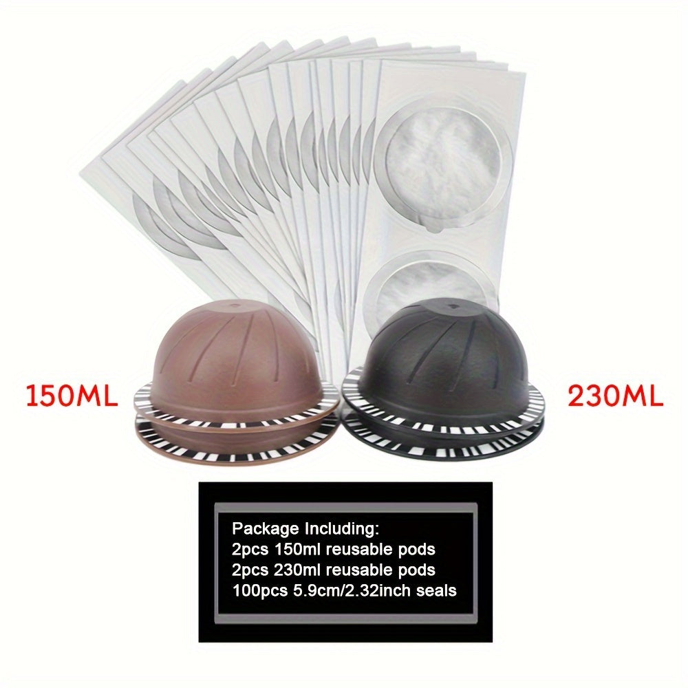 Aluminiy muhrlar va stikerlar bilan bir martalik qayta to'ldiriladigan kapsulalar, Nespresso Vertuo Plus avtomatik qahva tayyorlash mashinasi uchun mukammal, diametri 59 mm.