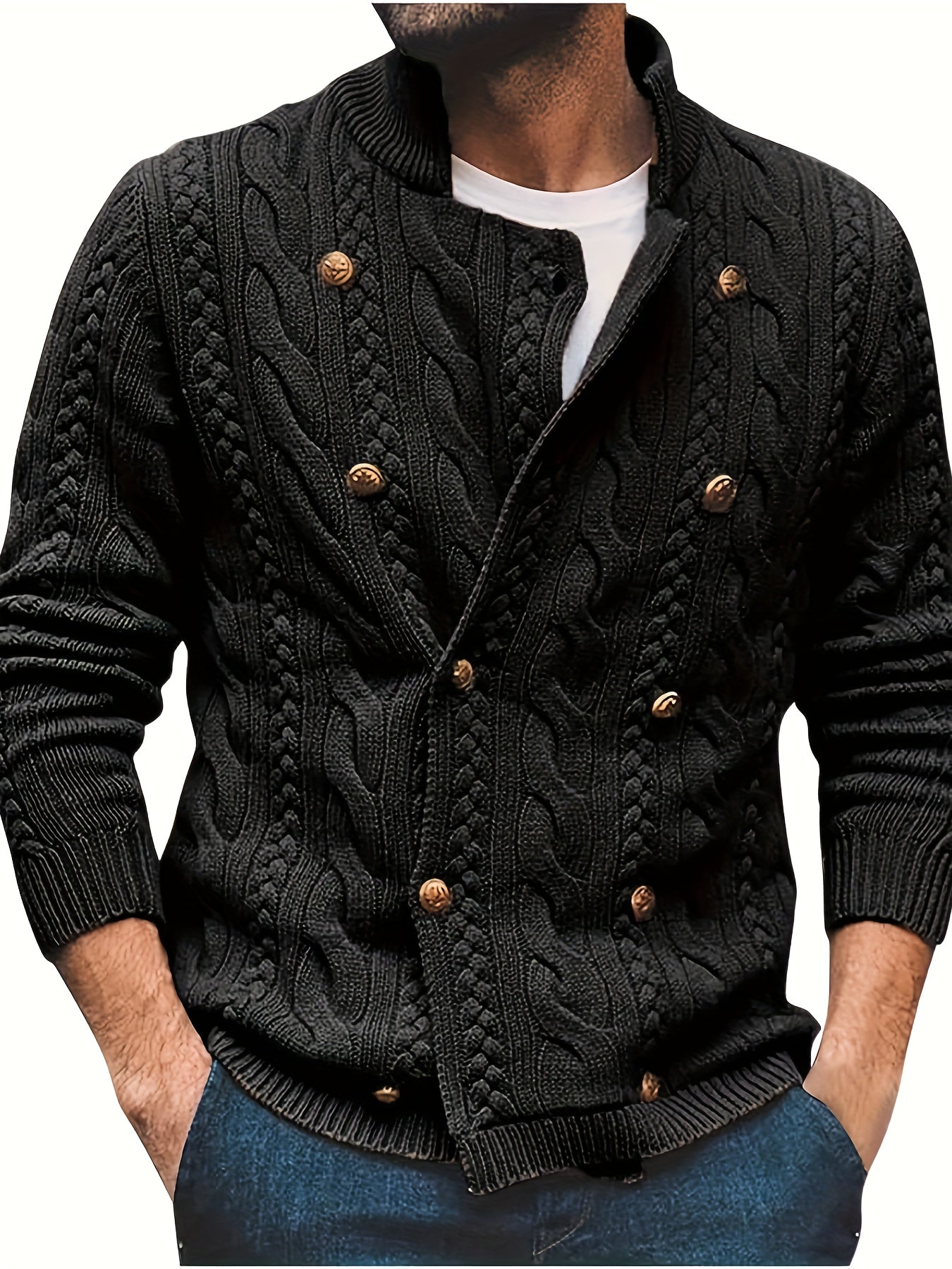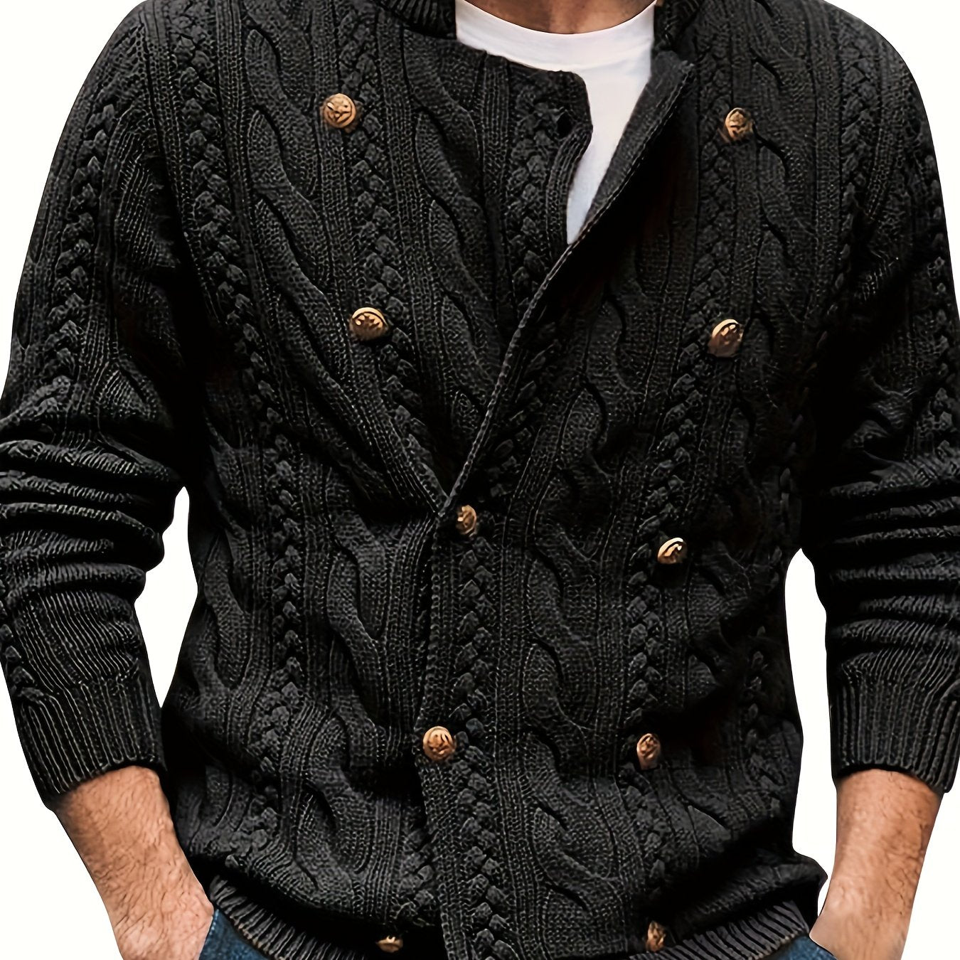 Katta o'lchamdagi erkaklar uchun ikki qavatli kabel to'qilgan kardigan, kuz va qish uchun mukammal