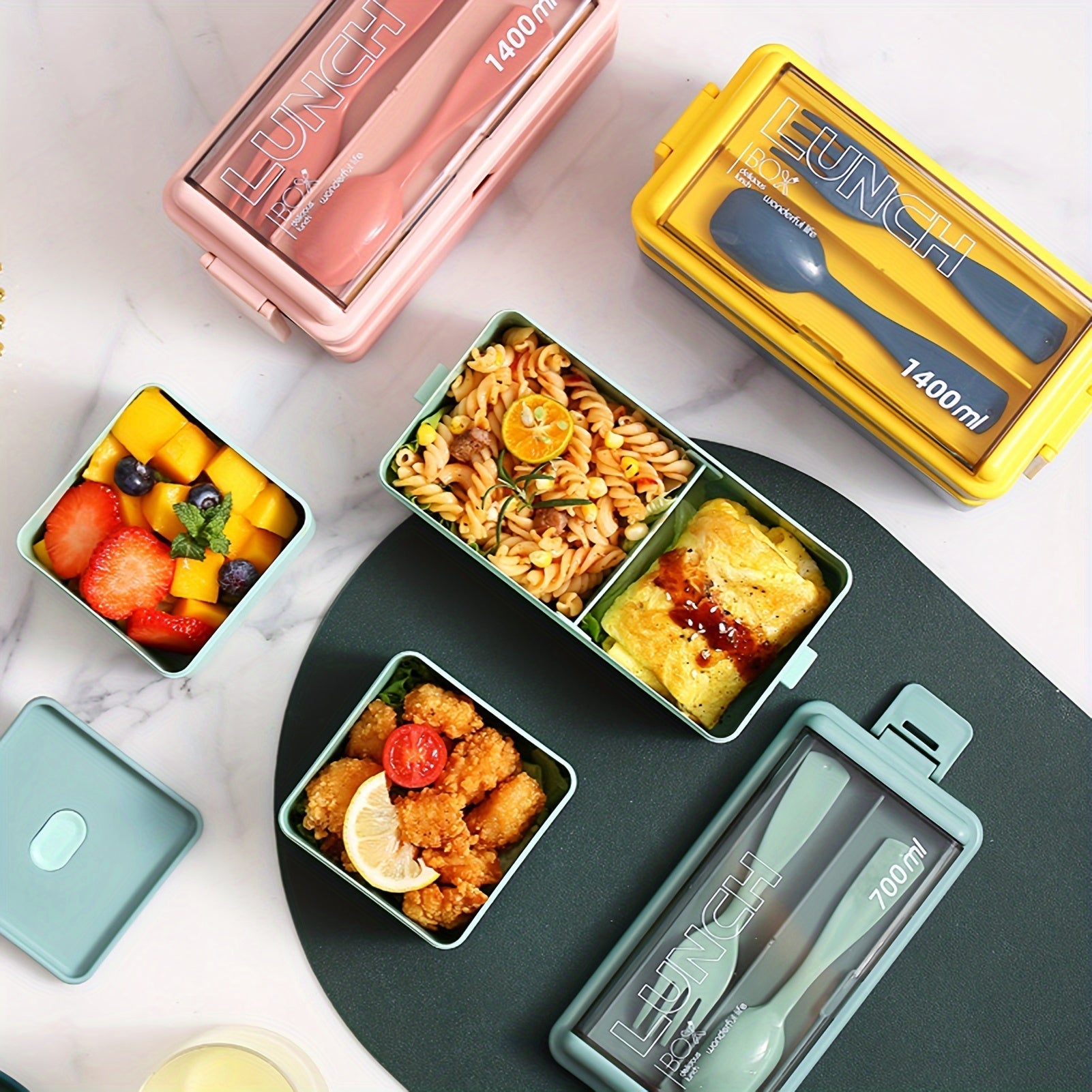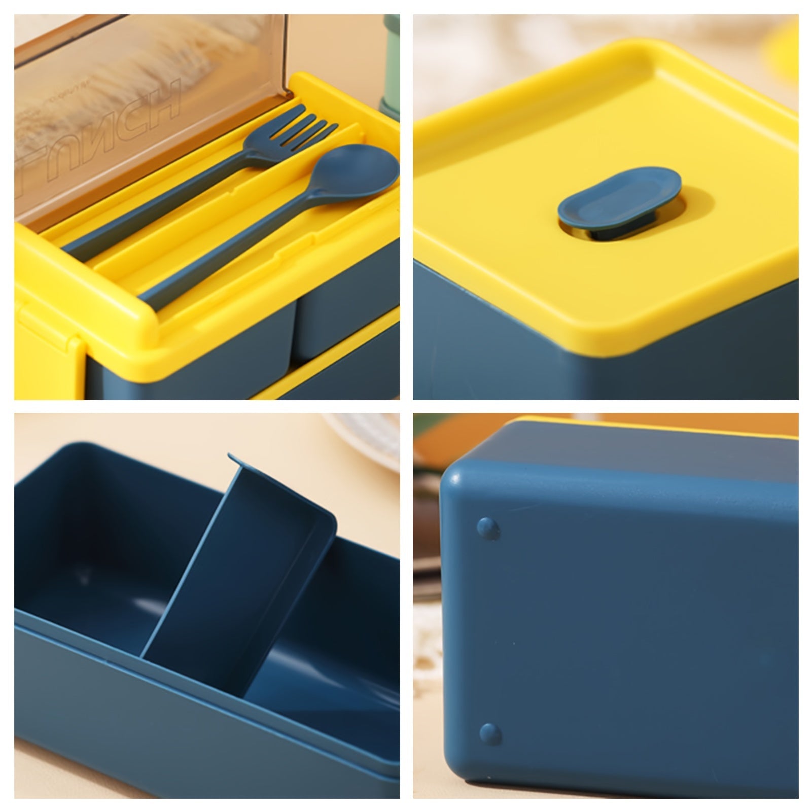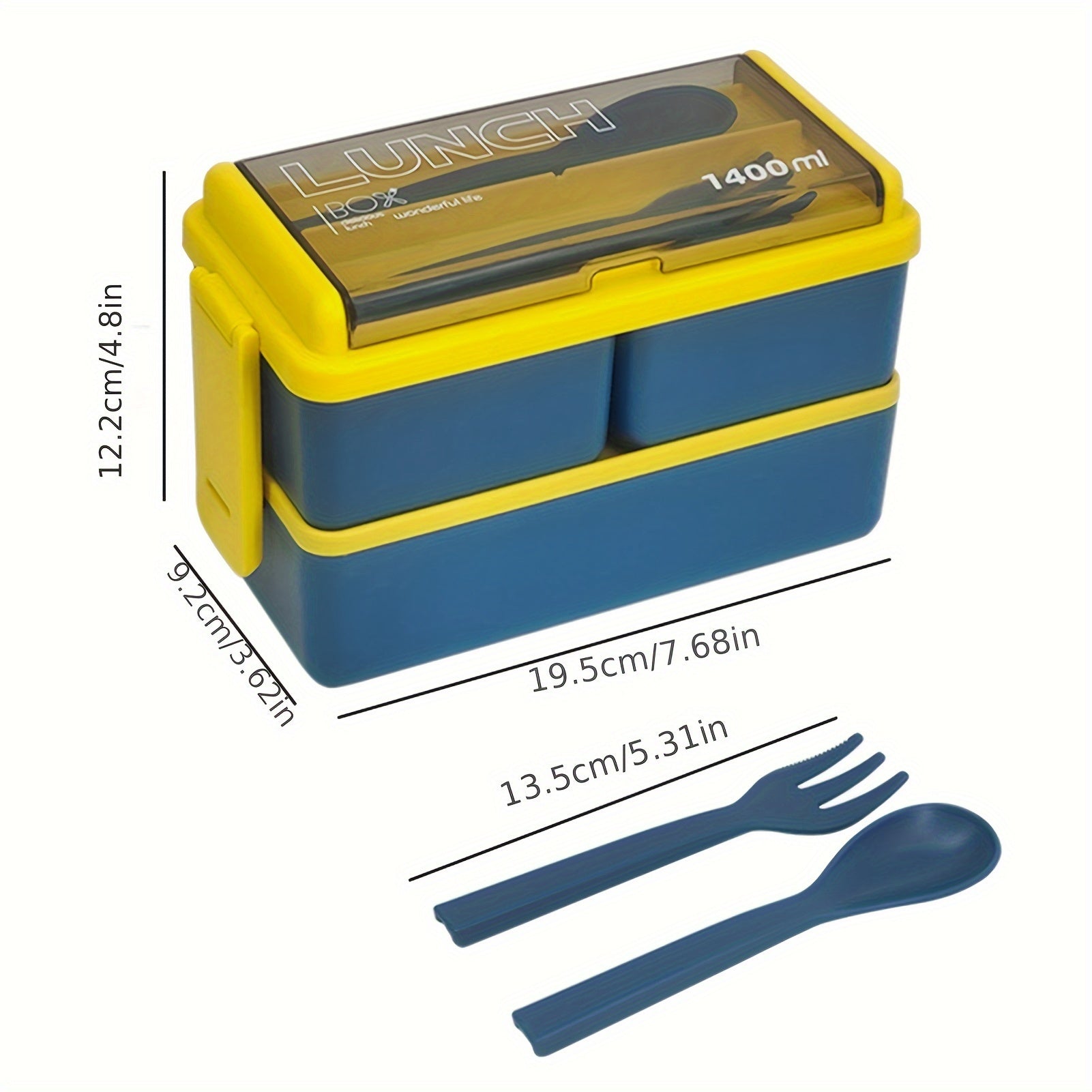 Ikki qavatli Bento tushlik qutisi, ajratgichli, suv o‘tkazmaydigan, mikroto‘lqinli pechda xavfsiz, PP materialdan tayyorlangan, ovqat tayyorlash uchun ideal – turli ranglarda mavjud, 1400ml