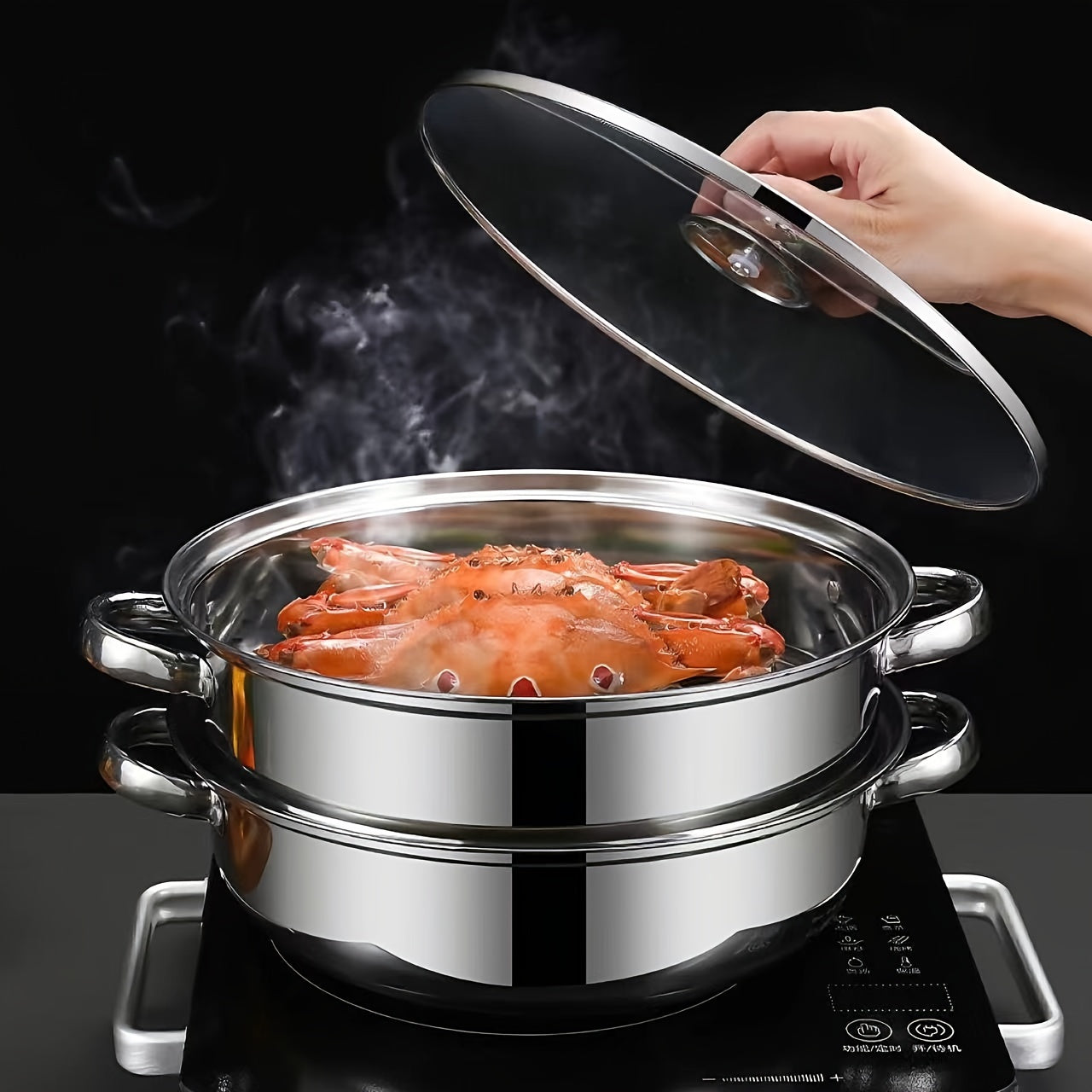 Ikki qatlamli zanglamaydigan po'latdan yasalgan sho'rva qozoni bug'irovchi