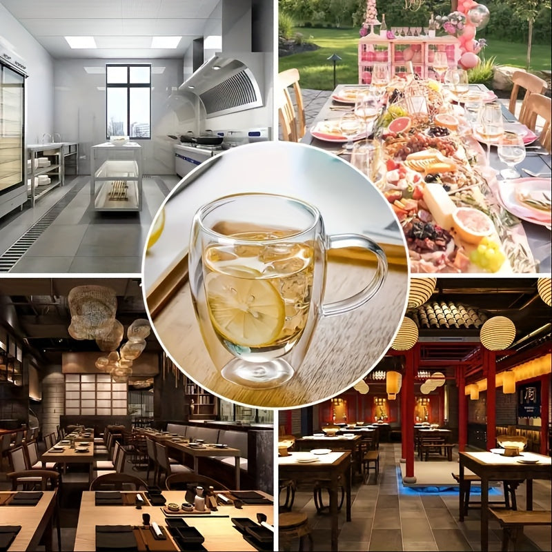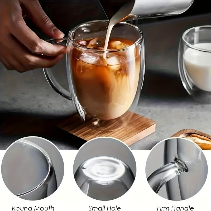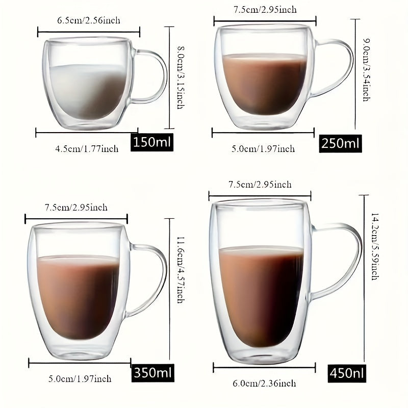 Ikki devorli yuqori borosilikat shisha chashka - Choy, Qahva, Sut va Sharbati uchun mukammal | Uy yoki ofis uchun ajoyib sovg'a | Qulay tutqichi bo'lgan mustahkam ichimlik idishlari, 1 dona to'plami | Issiqlikka chidamli ergonomik tutqichli chashka