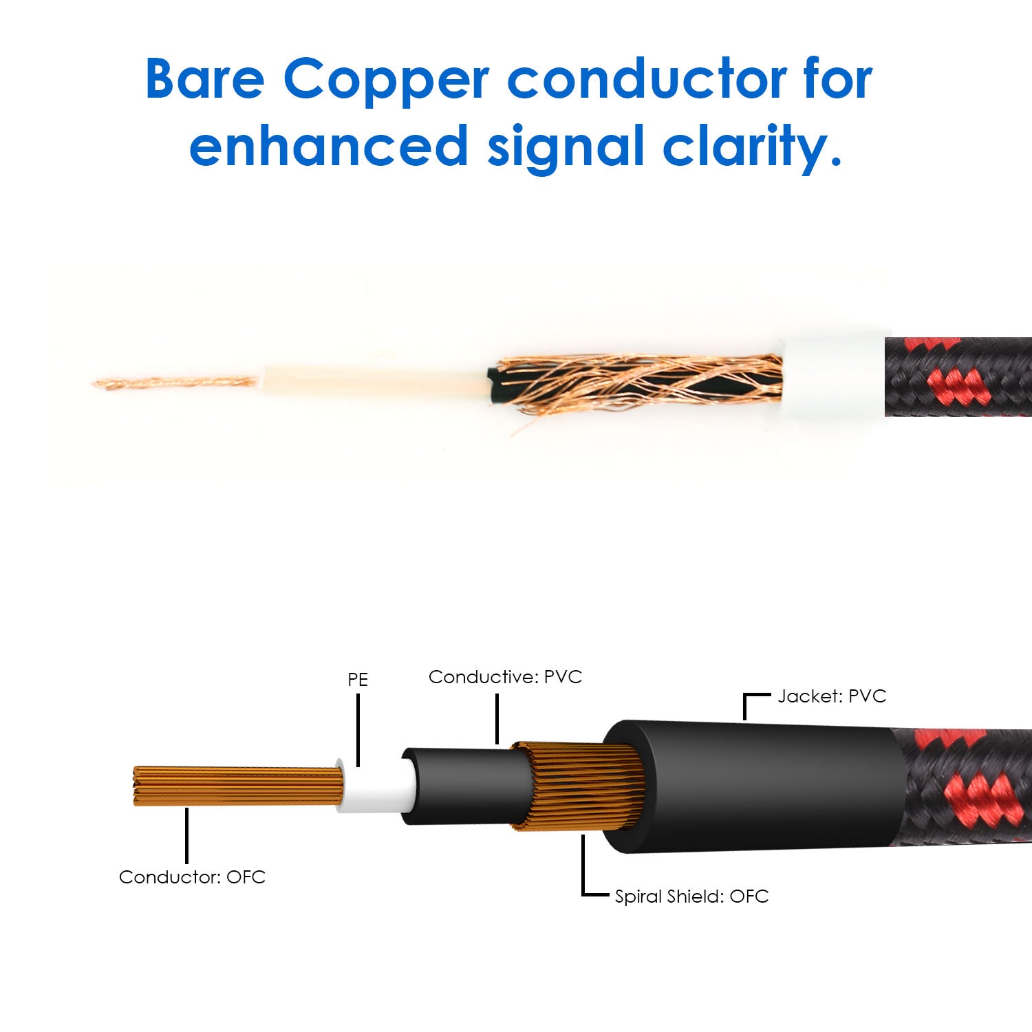 6.35mm Mono gitar kabeli 1M dan 10M gacha, oltin qoplangan ulanishlar bilan toʻqilgan ekranli