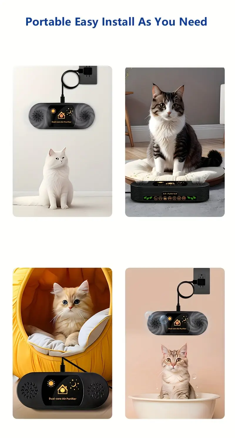 Ikki yadroli it hidini yo'q qiluvchi havo tozalagich USB bilan quvvatlanadigan, jim, devorga o'rnatiladigan