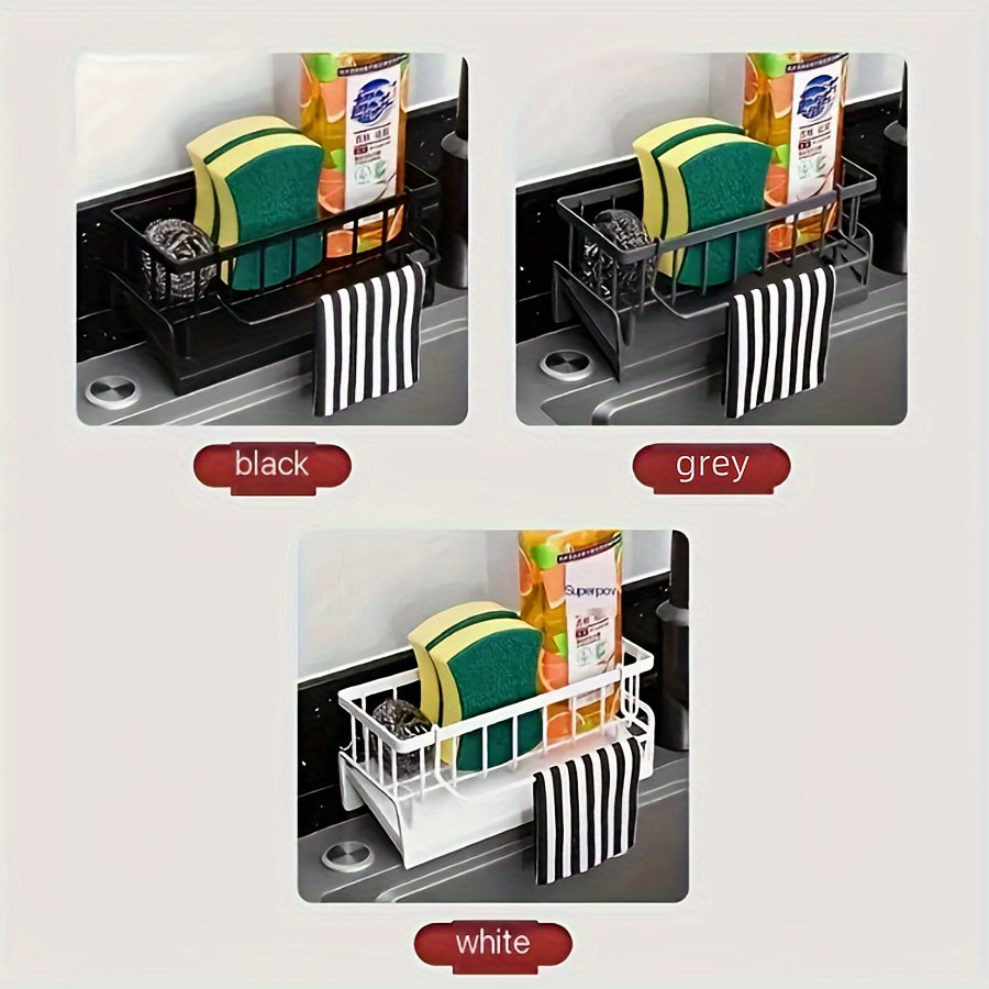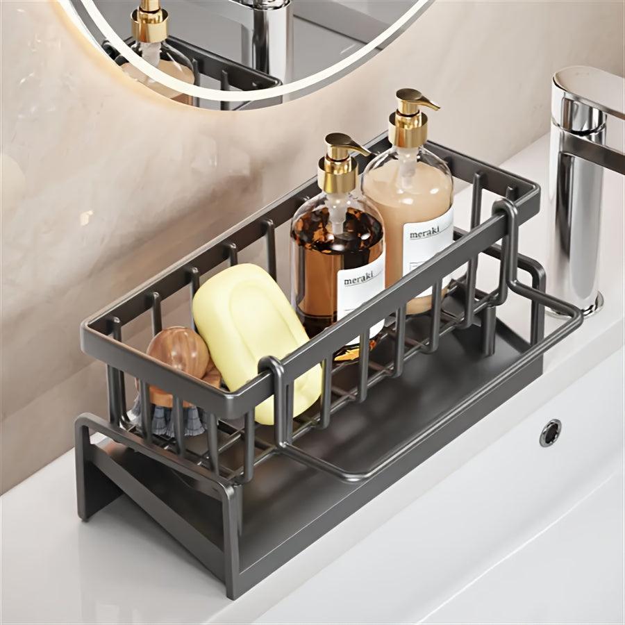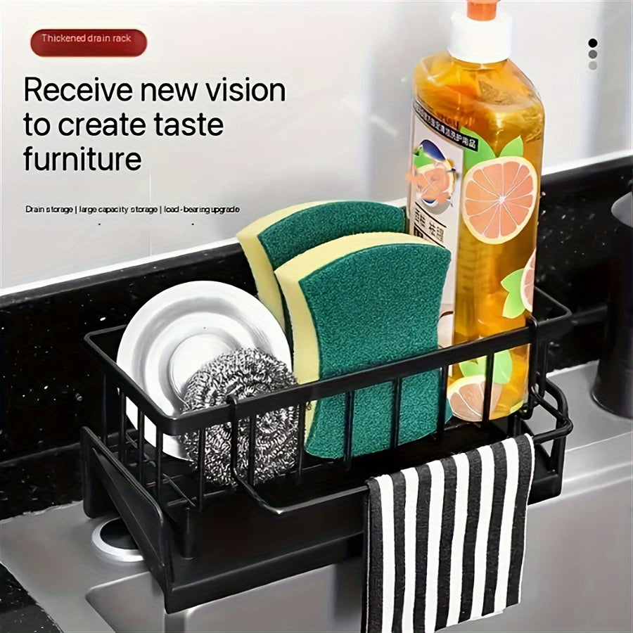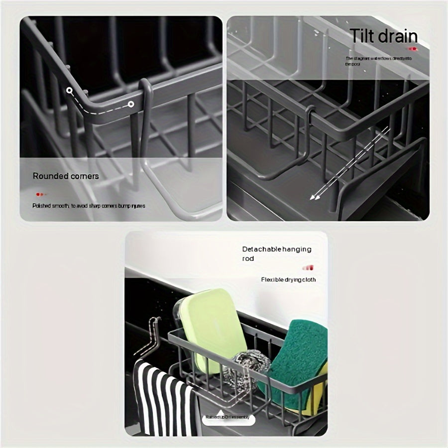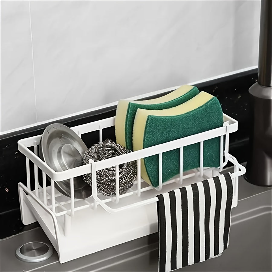 "Countertop uchun ikki funktsiyali idish to'plami va gubka ushlagich, oshxona va hammom uchun qulay saqlash yechimi, idish to'plari va gubkalar uchun bitta qatlamli tokcha, oshxona aksessuarlarini tartibga solish uchun ideal"