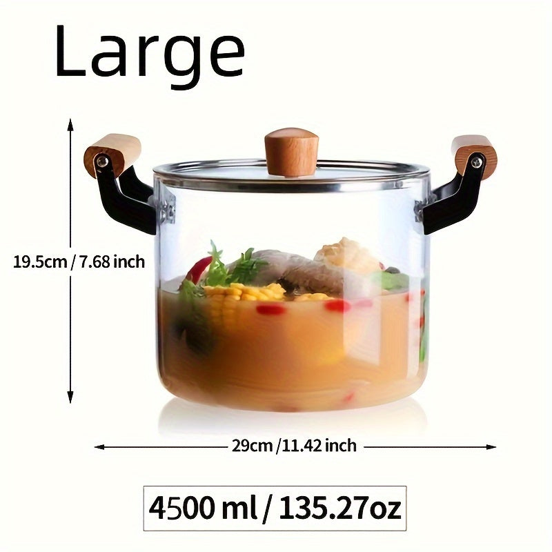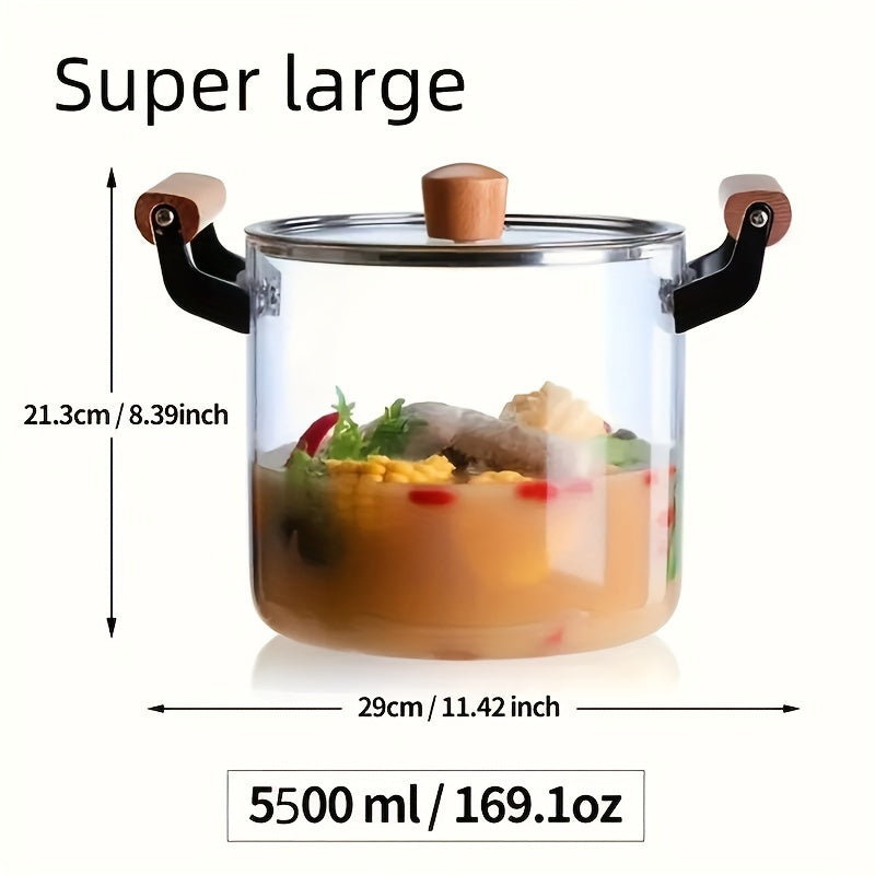 Ikki tutqichli shisha sho'rva qozoni qopqoq bilan - makaron, noodle, sho'rvalar va boshqa turli taomlar uchun ideal - idish-tovoq yuvish mashinasida xavfsiz foydalanish - oshxonada ko'p maqsadli pishirish asboblari