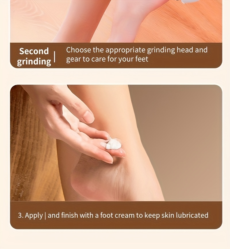Ikki boshli elektr oyoq tozalagich - qalin sun'iy charmni silliqlash va quruq engil bej rang uchun mo'ljallangan portativ USB zaryadlanadigan oyoq toshi. O'zgartiriladigan maydalash boshlarini o'z ichiga oladi. Mukammal sovg'a.