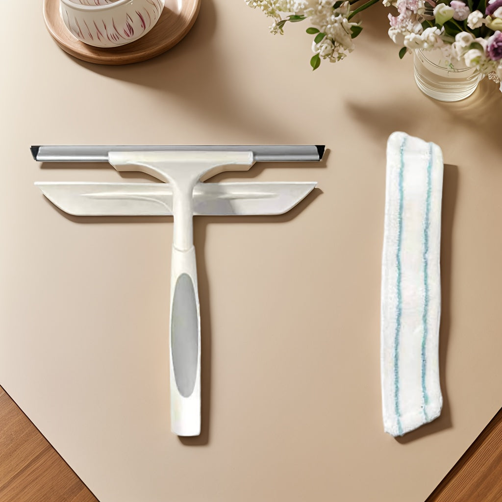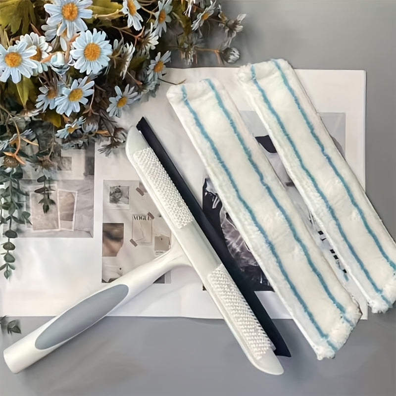 Ikki tomonlama mikroto'qima deraza tozalagichi TPR tutqichi va qirqish bilan, yashash xonasi, yotoqxona va hammom uchun ideal. O'zgaruvchan boshlar va ultra nozik tolali qizg'ich bilan birga keladi.