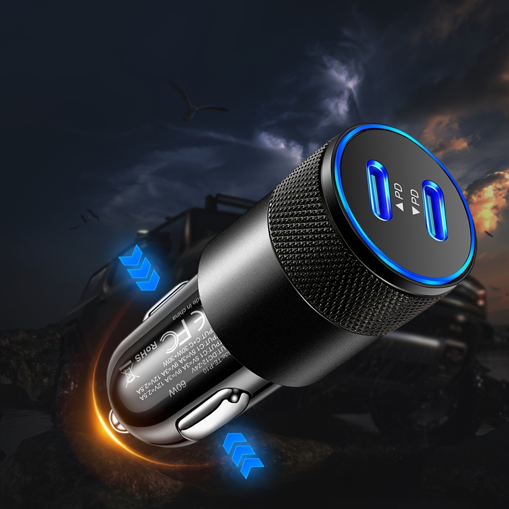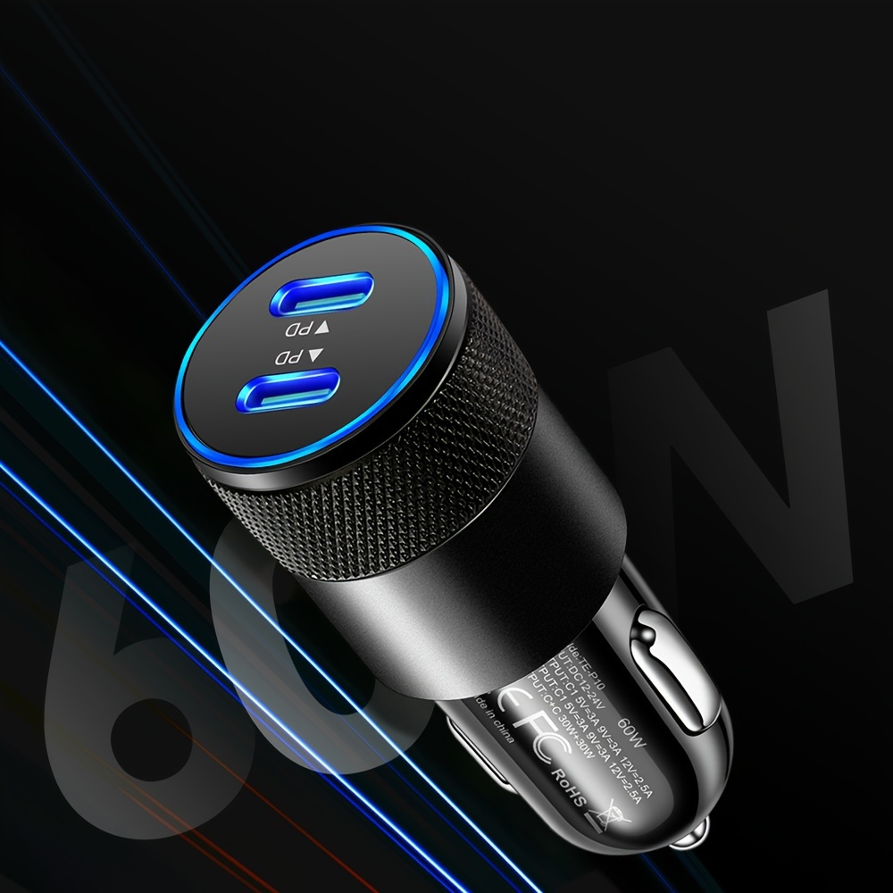 K双 USB-C Avtomobil uchun zaryadlovchi 60W Tez Zaryadlash Adapteri Quick Charge 3.0 bilan