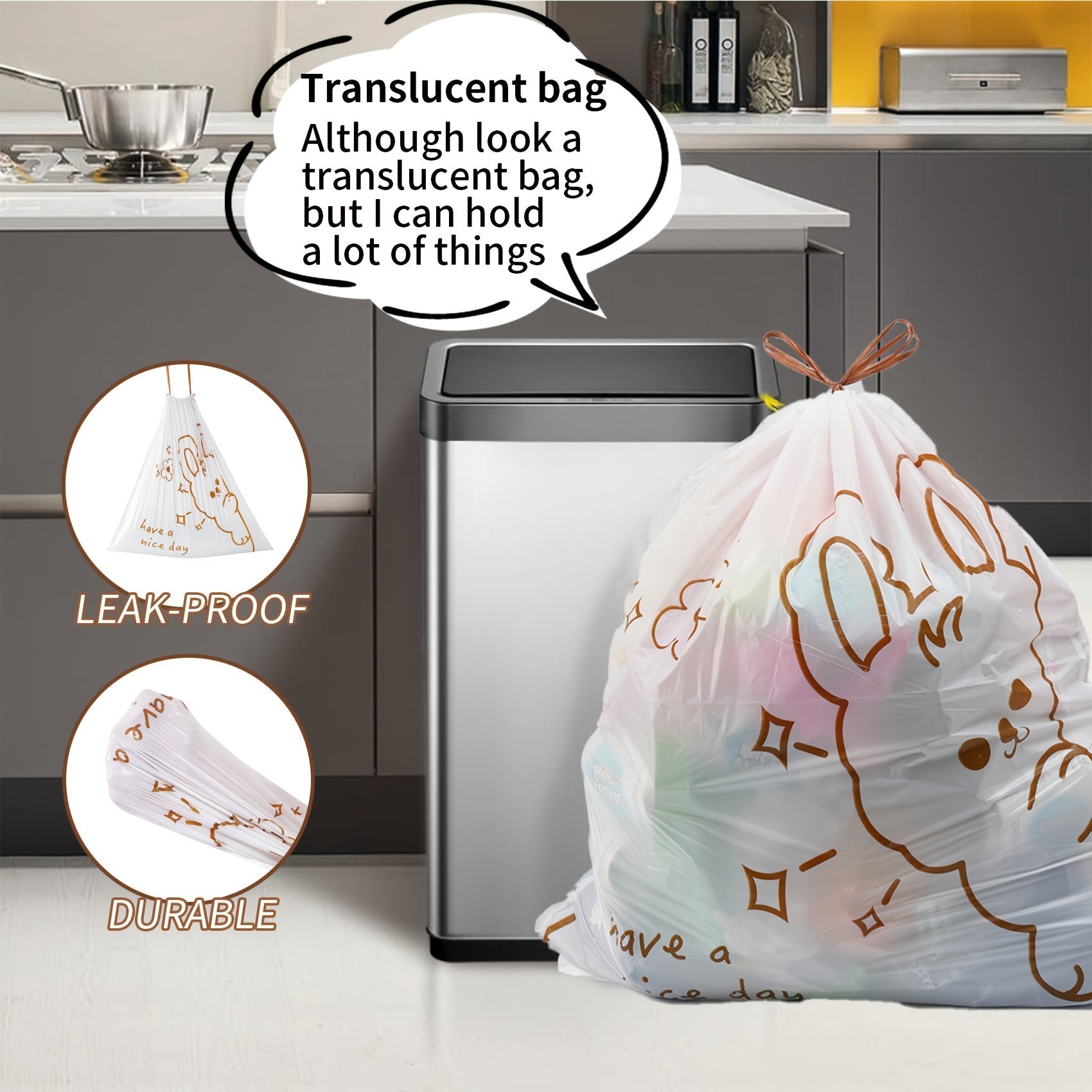 Mustahkam 13-gallonli tortma ipli axlat qoplari - yirtilishga chidamli, o'z-o'zidan muhrlanadigan yuqori qismi, turli xonalar va ochiq joylar uchun keng plastik chiqindi qoplari - uy uchun qulay tozalash yechimi